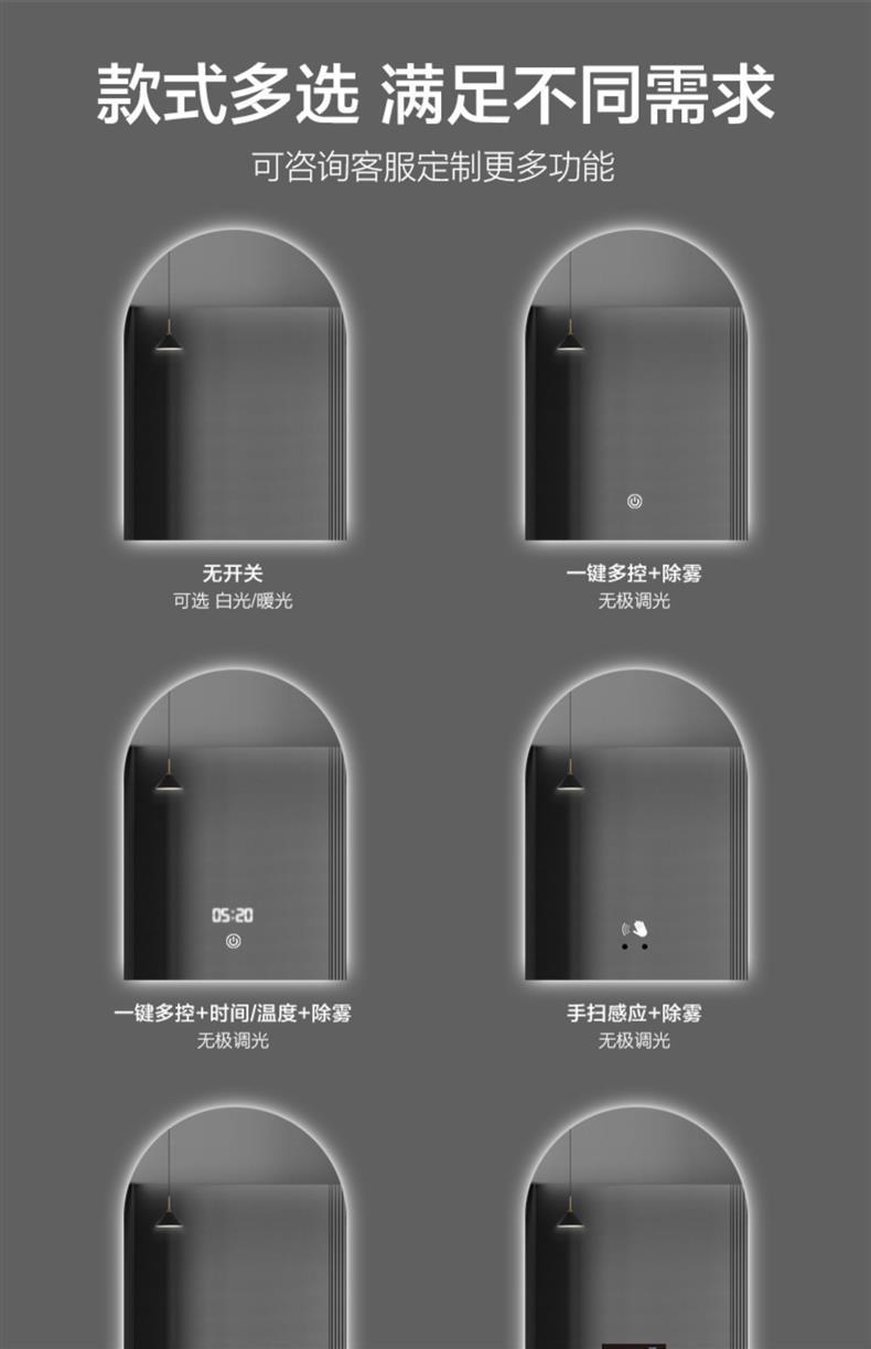 [human body induction] + (bluetooth music + time and temperature + defogging + three-tone lighting)