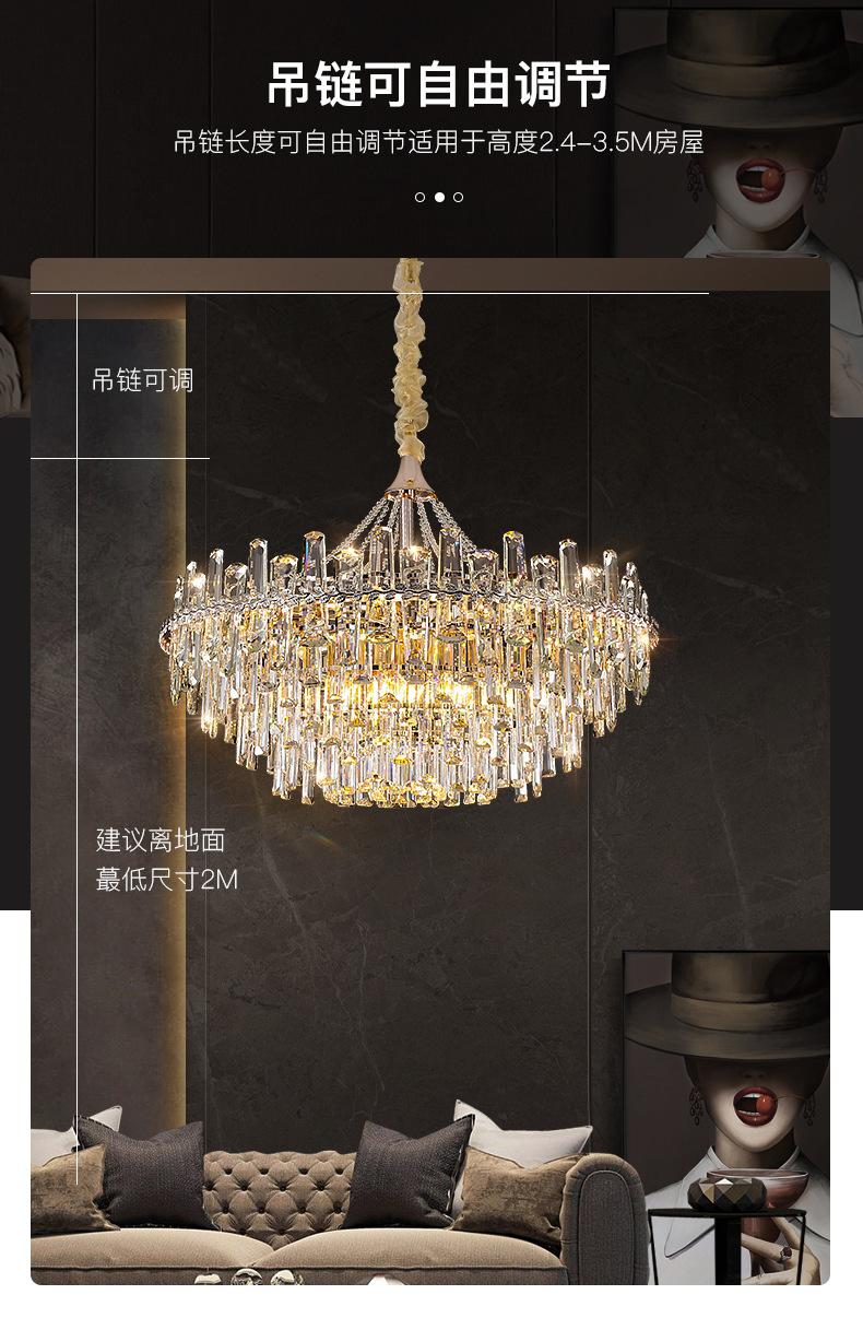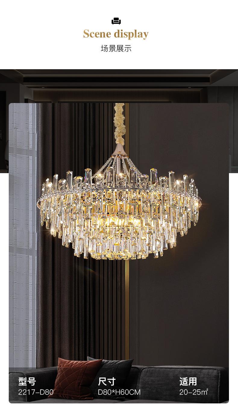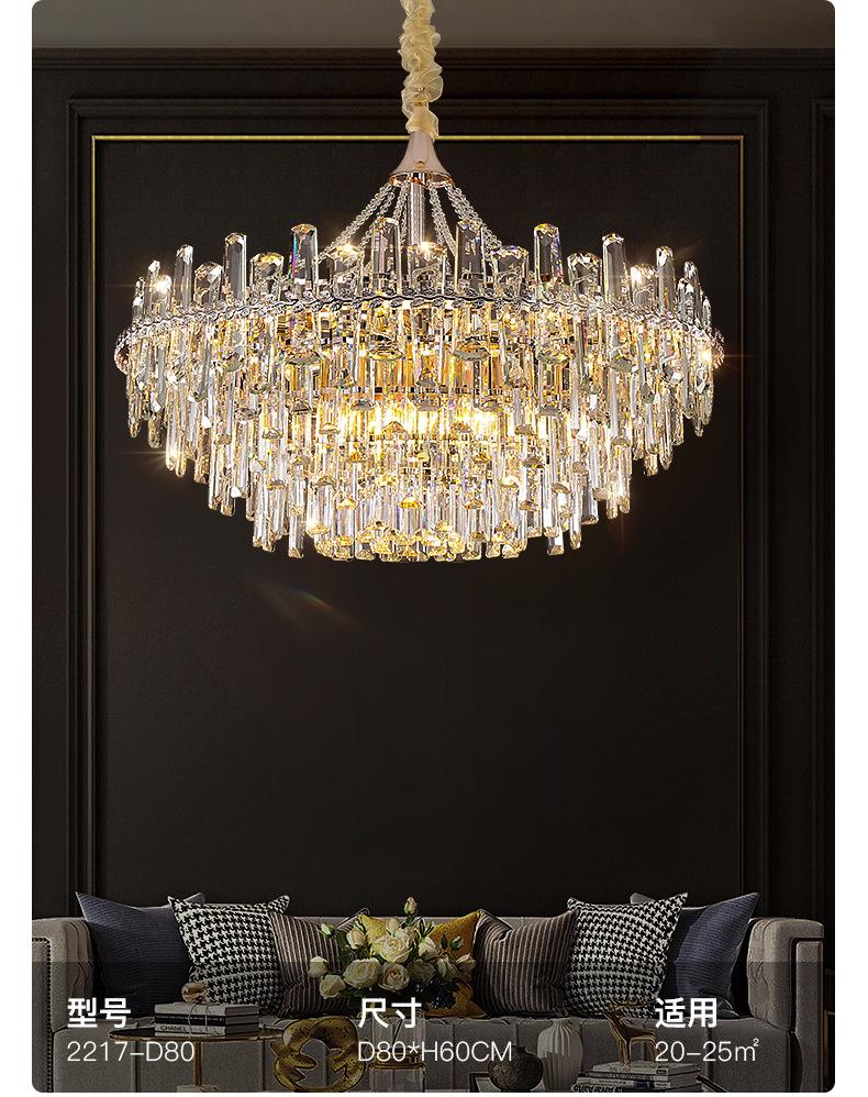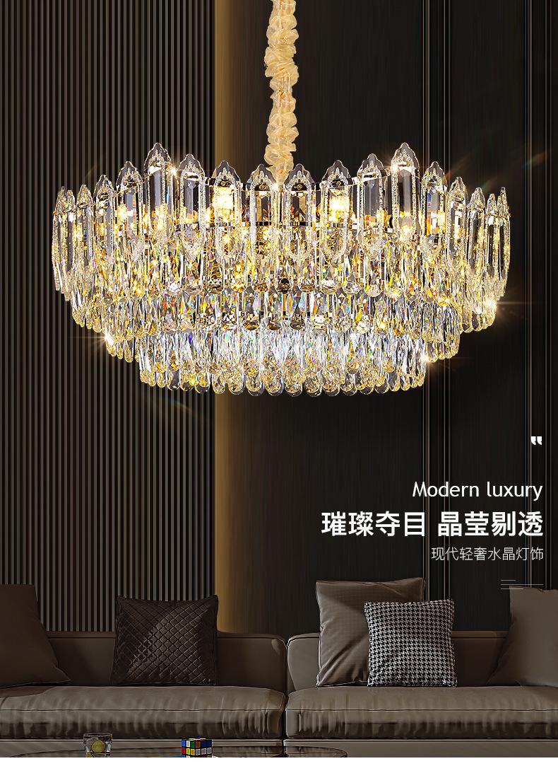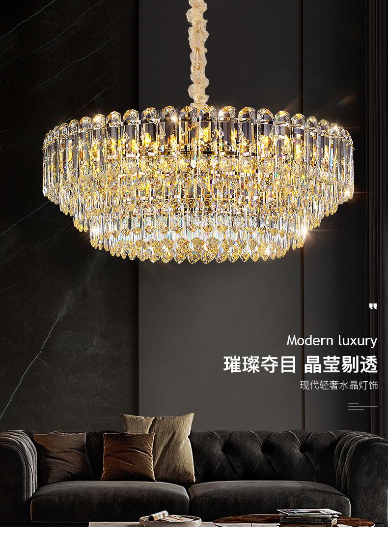 Lámpara de araña de sala de estar de lujo ligero posmoderna simple moderna nuevo cristal hermosa restaurante francés dormitorio principal combinación de lámpara grande