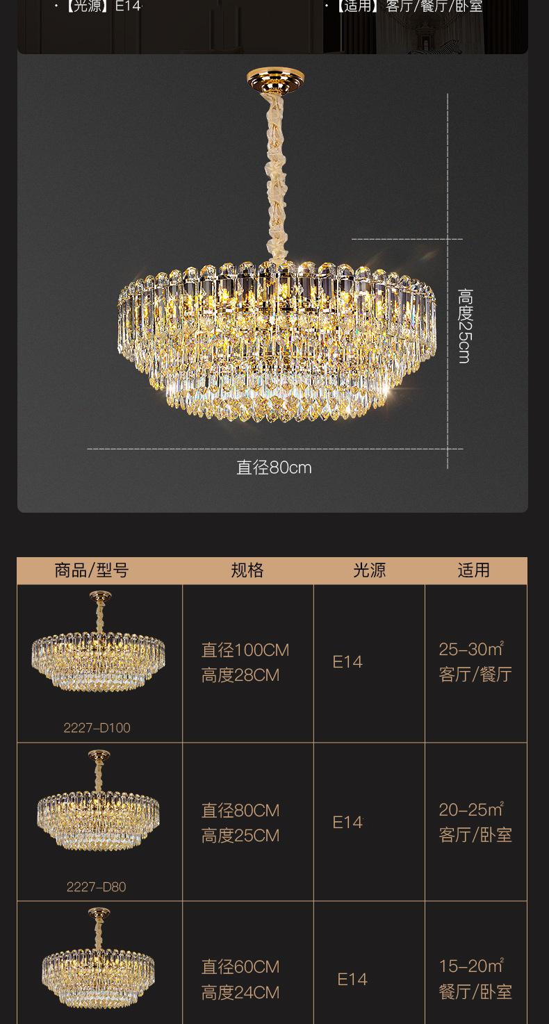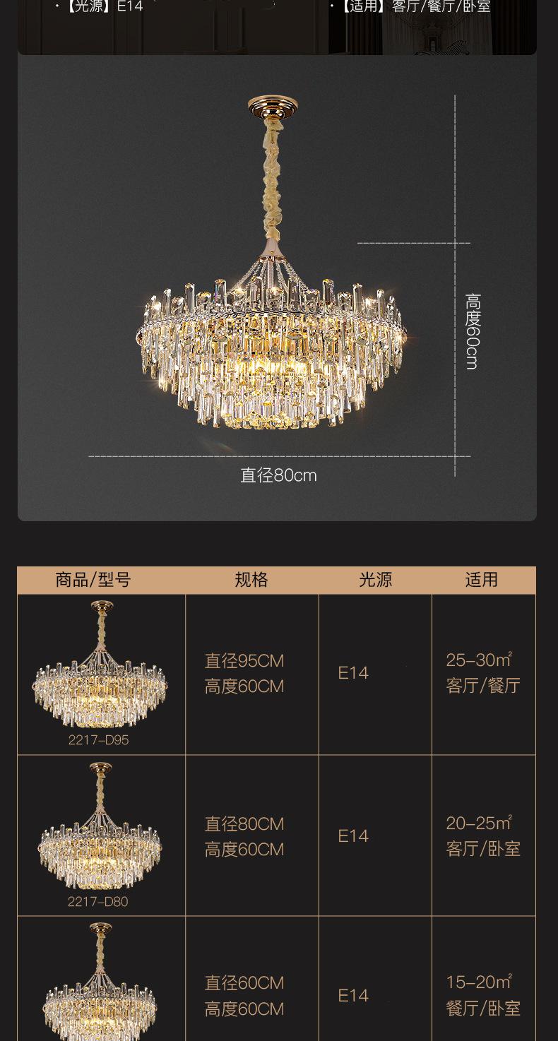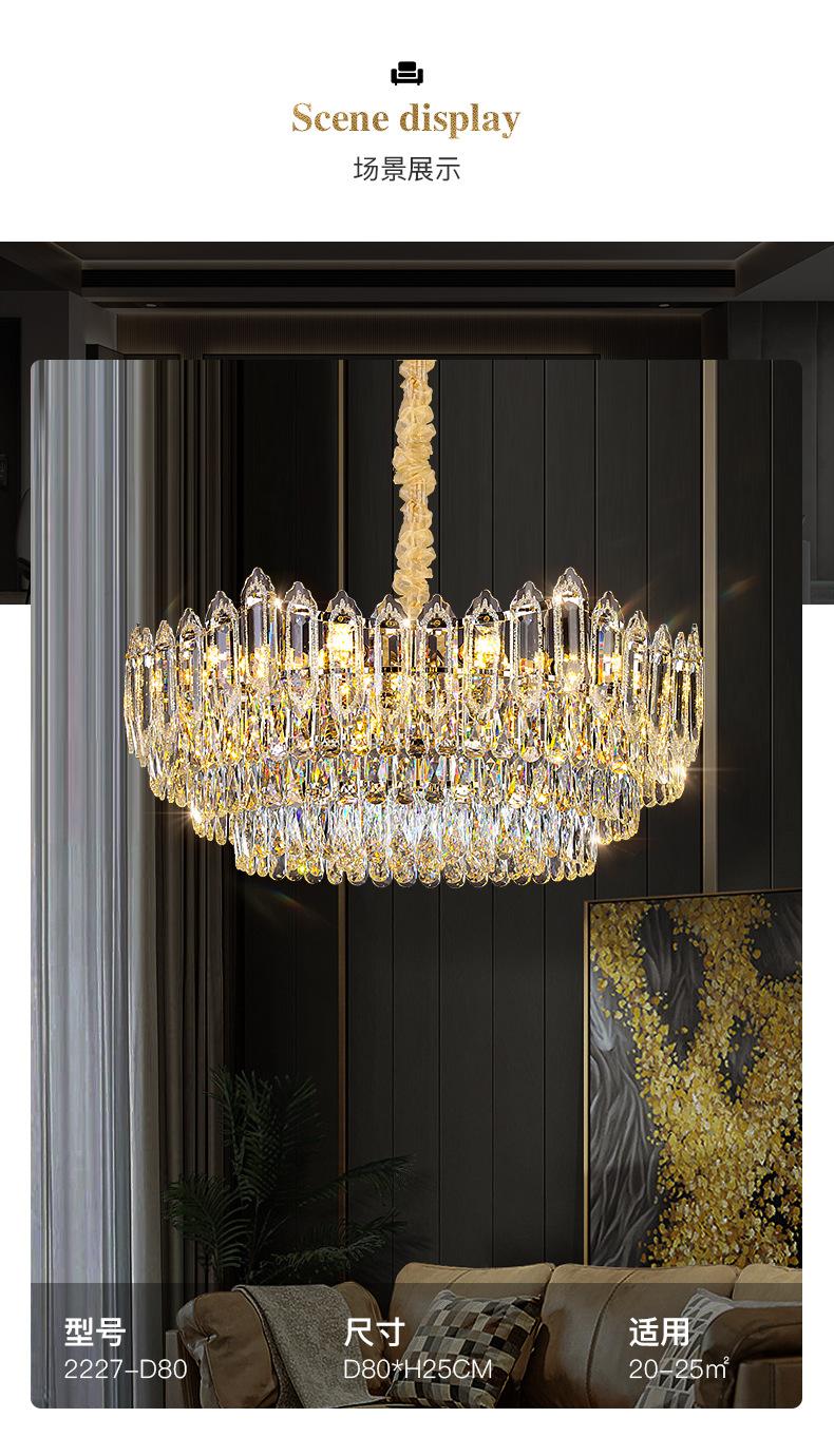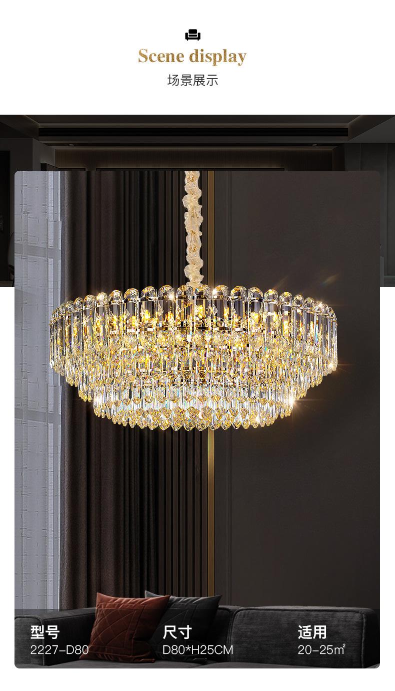 Lámpara de araña de sala de estar de lujo ligero posmoderna simple moderna nuevo cristal hermosa restaurante francés dormitorio principal combinación de lámpara grande