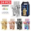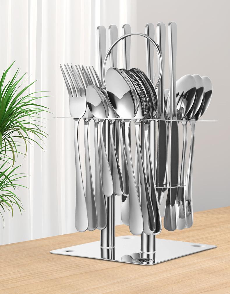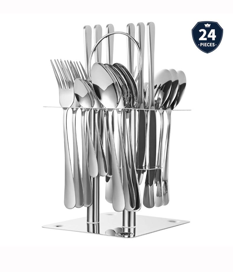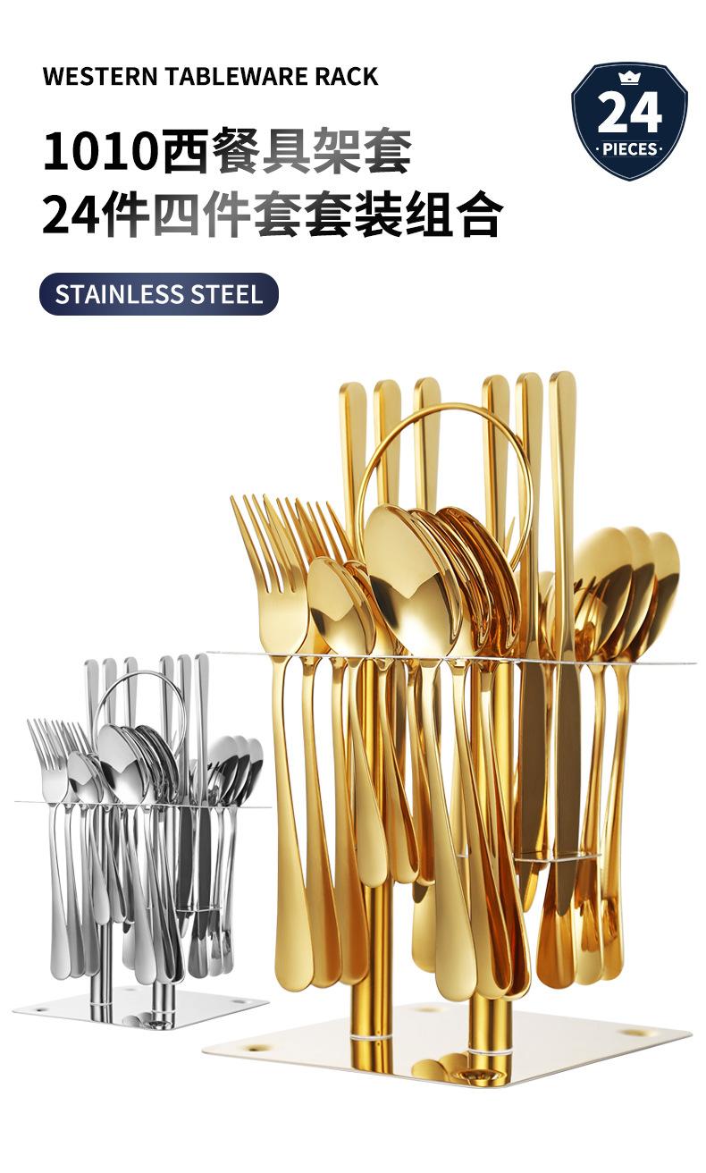 Vajilla de acero inoxidable 1010 juego de vajilla occidental de 24 piezas 4 piezas principales cuchillo de postre para bistec, tenedor y cuchara con soporte