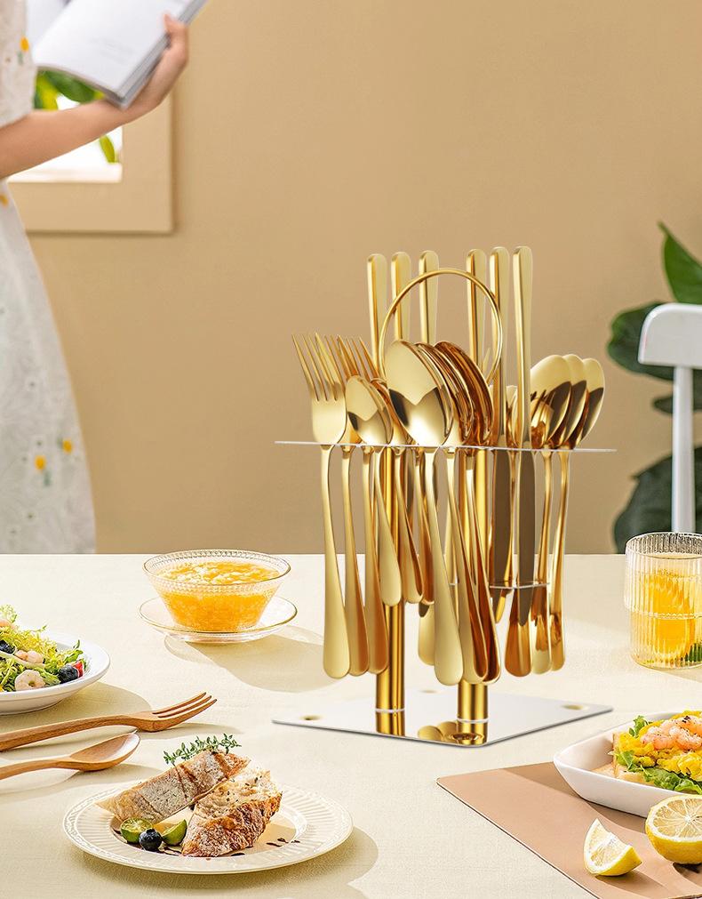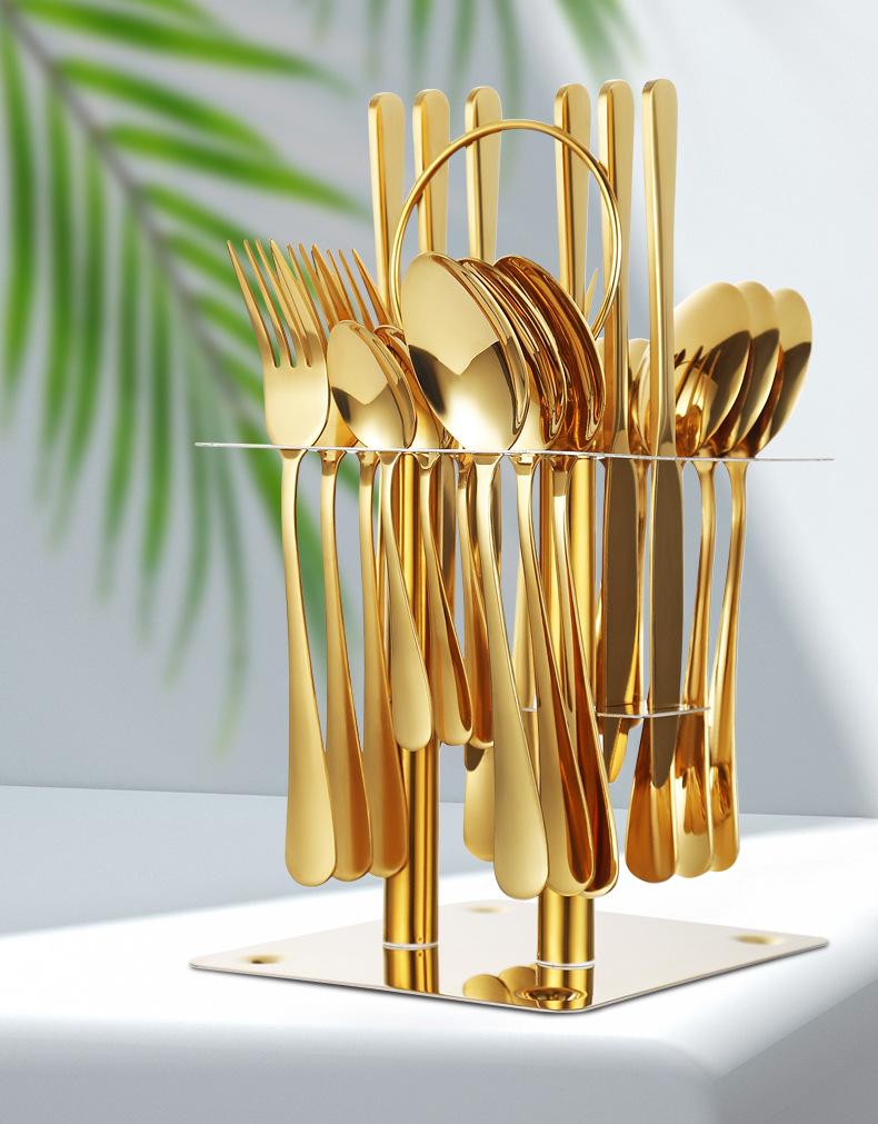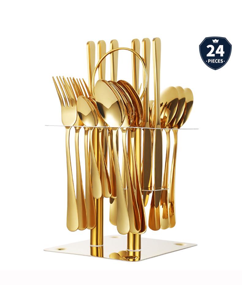 Gold 24-piece set + cutlery rack + gift box combination