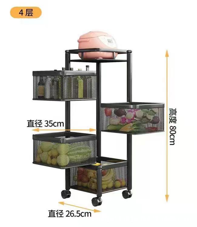 Estante de almacenamiento de verduras de cocina de múltiples capas, cesta cuadrada giratoria para verduras, esquina de frutas, fregadero de drenaje con polea