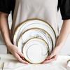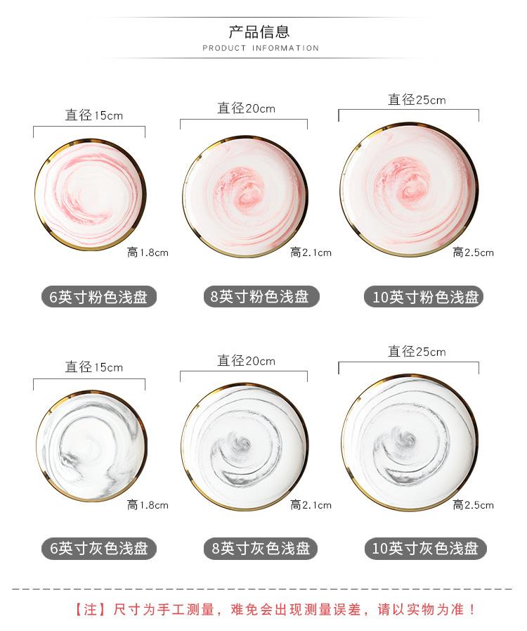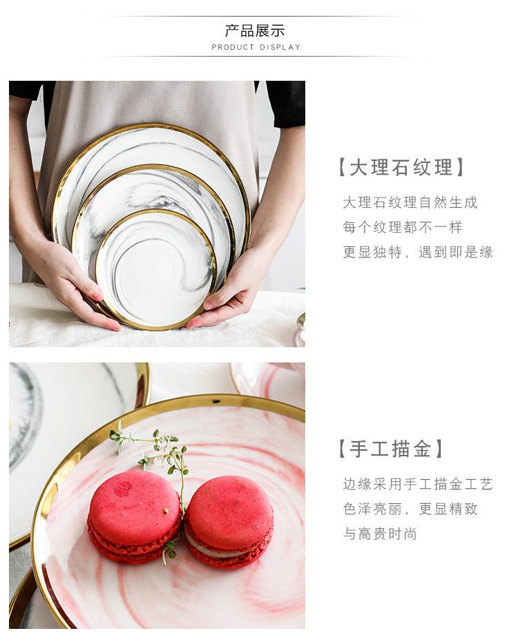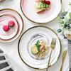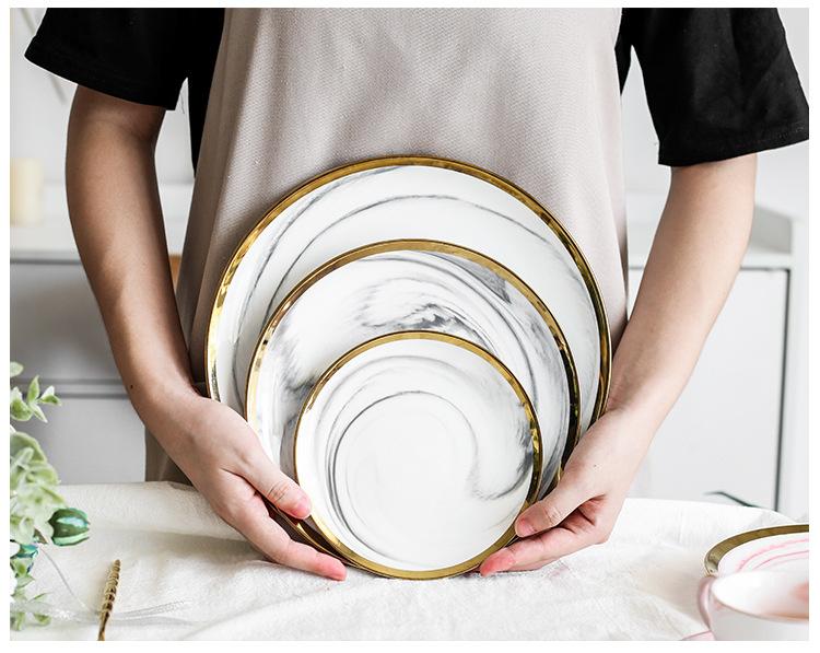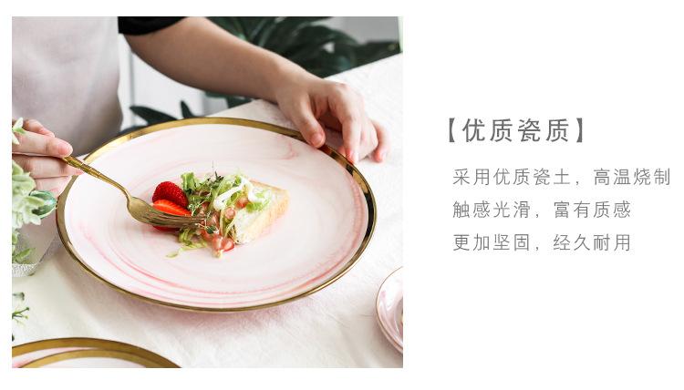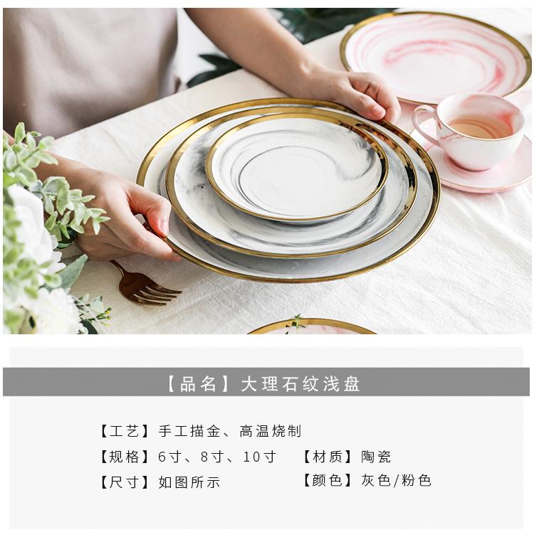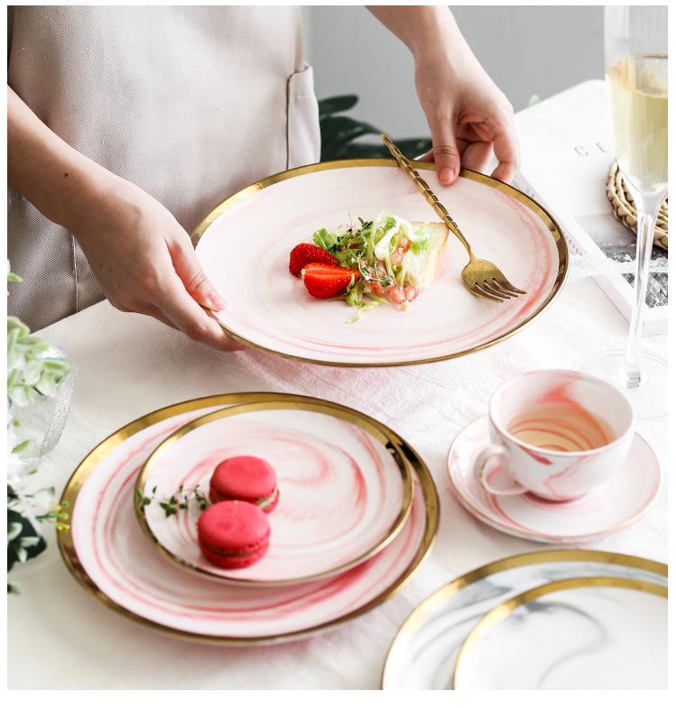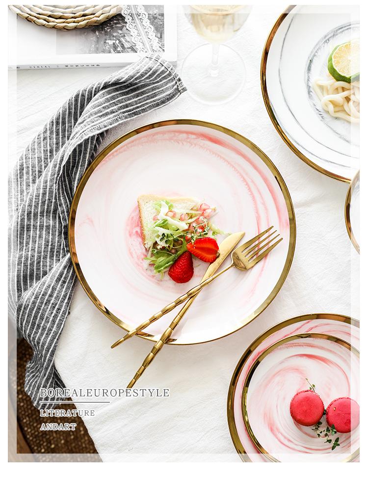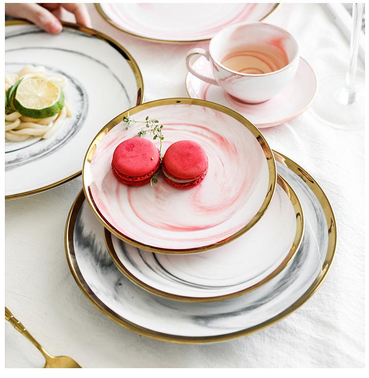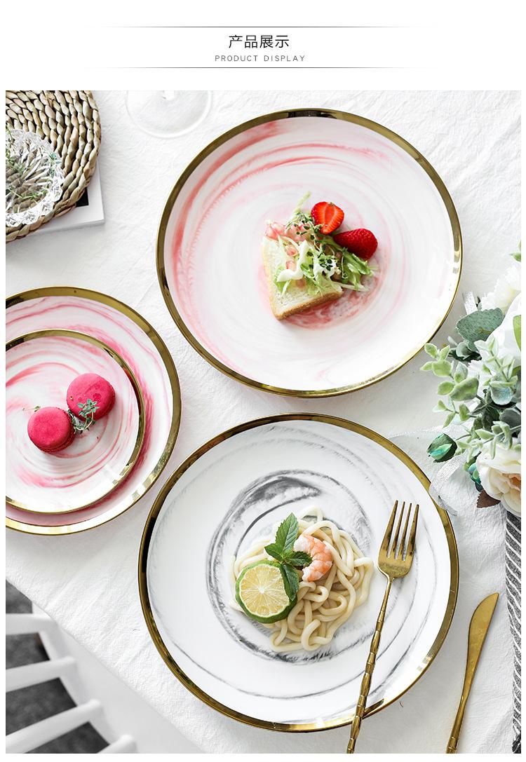 Plato nórdico de cerámica con borde dorado y marmoleado. Plato de carne occidental. Plato de postre de celebridades de Internet. Plato doméstico.