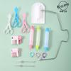 Lista de productos: (1 plato giratorio antideslizante para decorar) (36 boquillas para decorar) (2 mangas pasteleras de 12 pulgadas) (1 juego de raspadores de 3 piezas) (50 mangas pasteleras desechables) (5 convertidores de boquillas para decorar) (9 cuchillos para trinchar) (1 juego de cucharas medidoras)