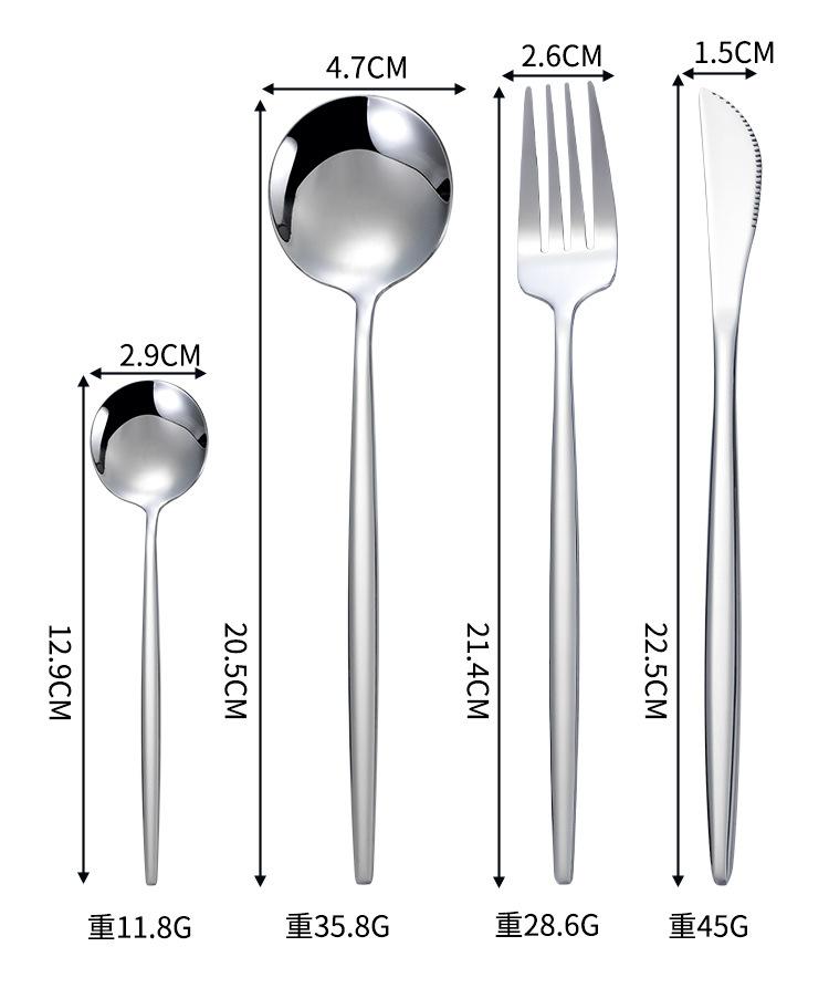 Dinner knife, Main meal spoon, Main Fork, Tea Spoon, Four-piece set