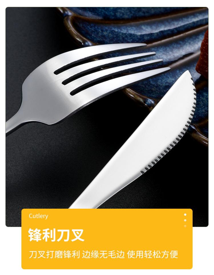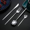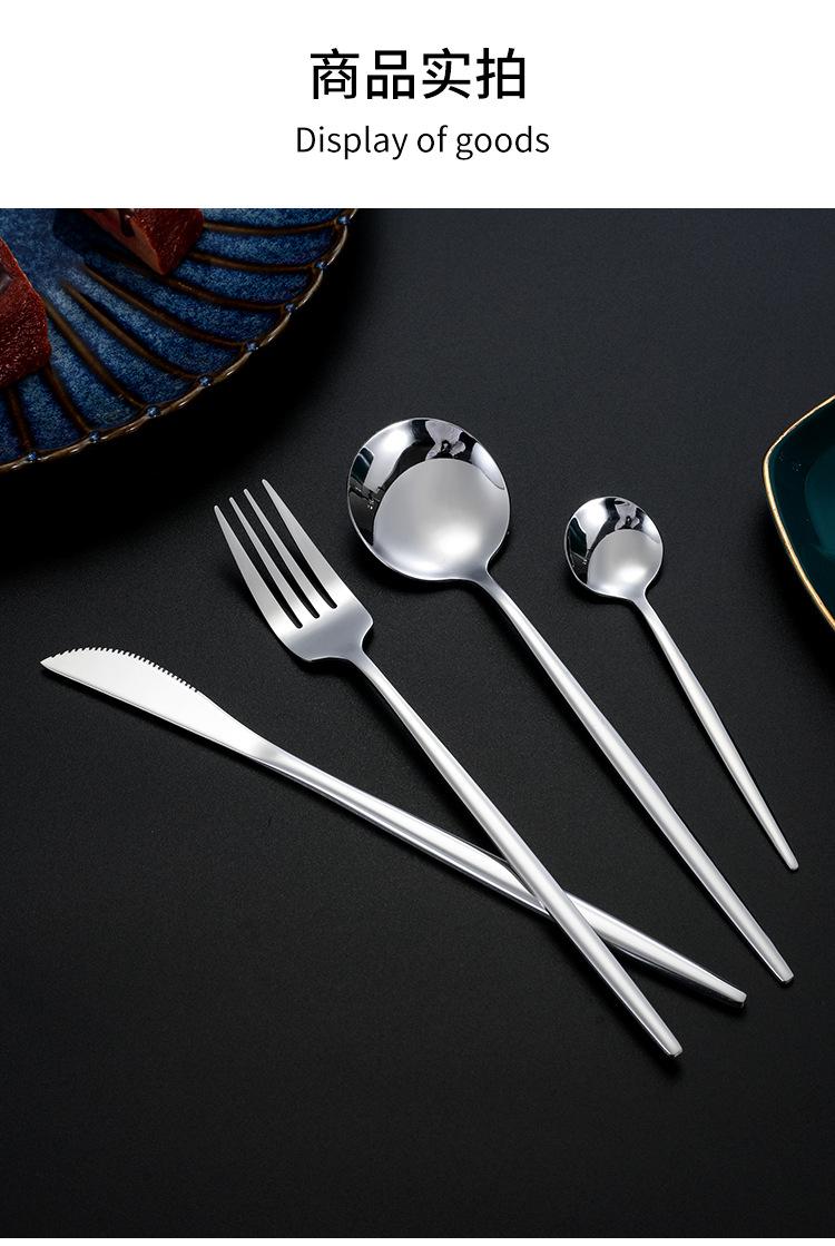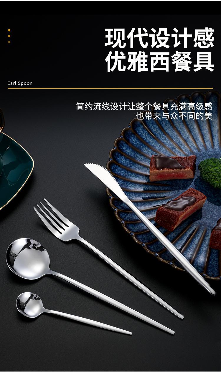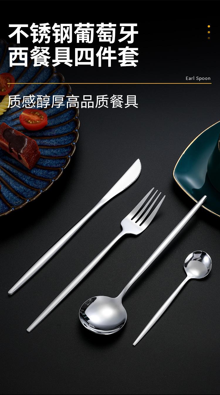 Vajilla transfronteriza de acero inoxidable 410 para comida occidental, cuchillo de bistec portugués chapado en titanio, tenedor, cuchara, cucharita de té, juego portátil de 4 piezas