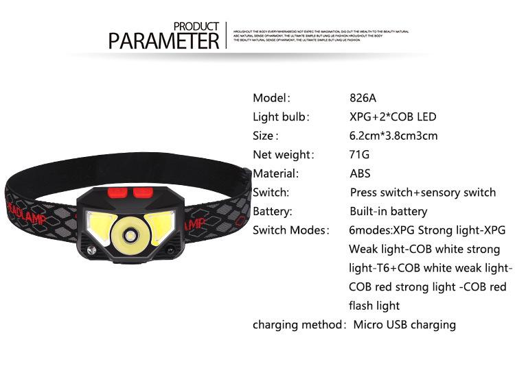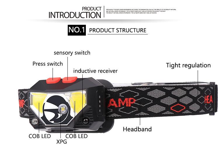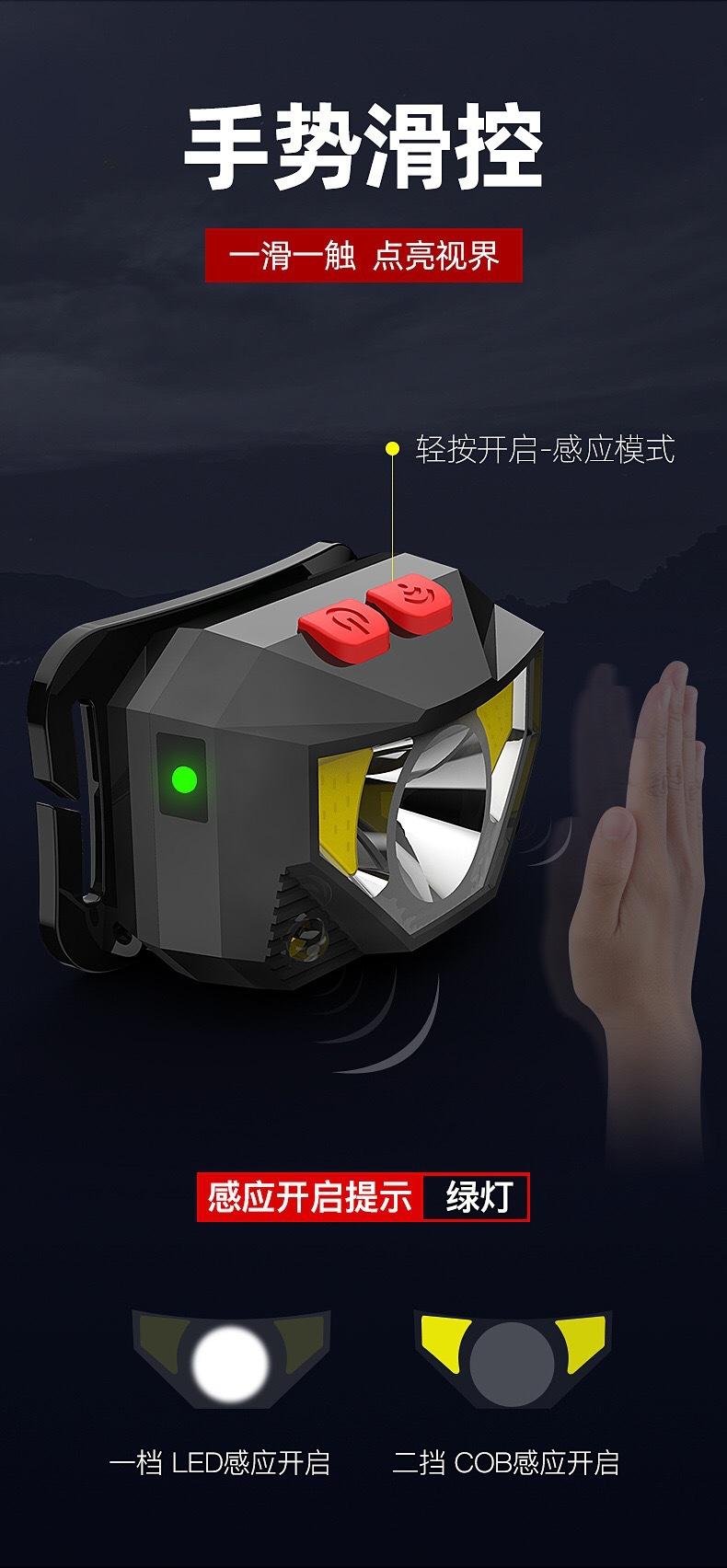 Nuevo mini faro cob transfronterizo pequeño, luz LED potente, faro de inducción, linterna de cabeza, linterna para correr de noche, faro para montañismo