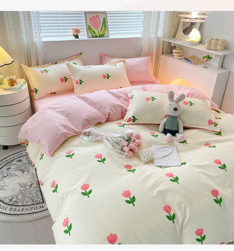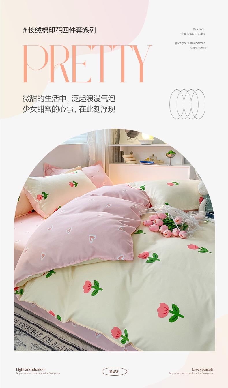Compra Venta al por mayor de juego de cama de cuatro piezas de algodón engrosado con lijado, sábana de cachemira vegetal, funda de edredón, ropa de cama de tres piezas para dormitorio al por mayor en Joom.pro