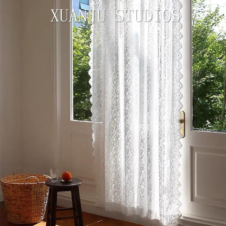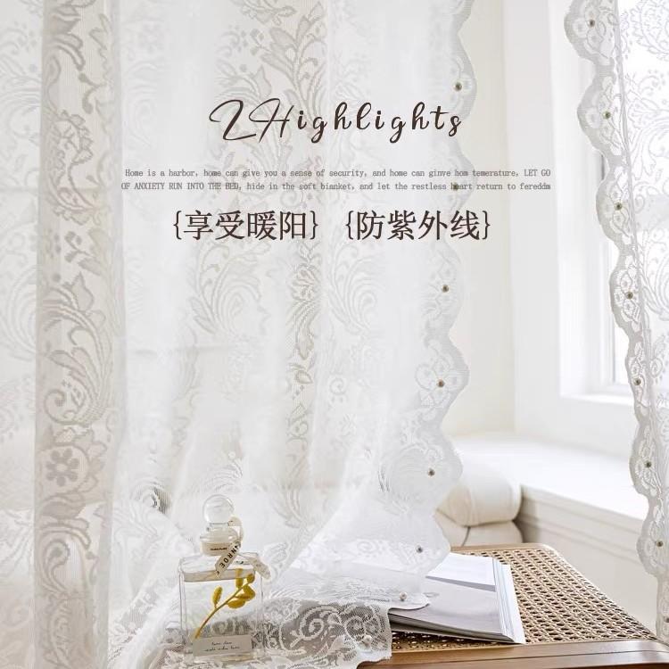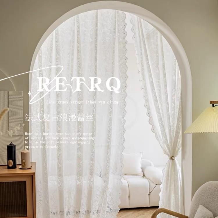 Cortina de pantalla para ventana salediza, con cuentas para ventana interior, estilo francés retro, con velcro, sin perforaciones, de encaje, estilo pastoral, para puerta, divisoria