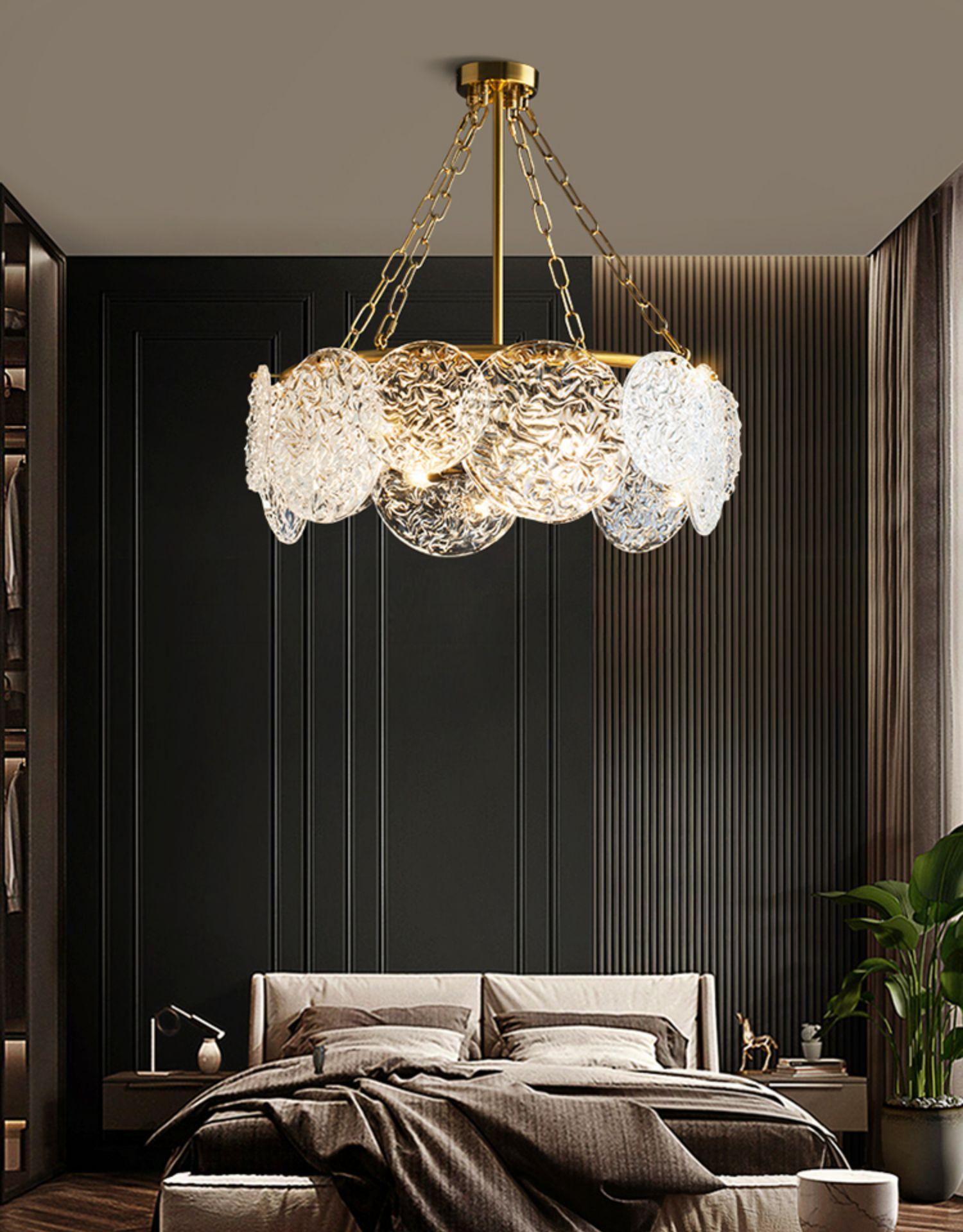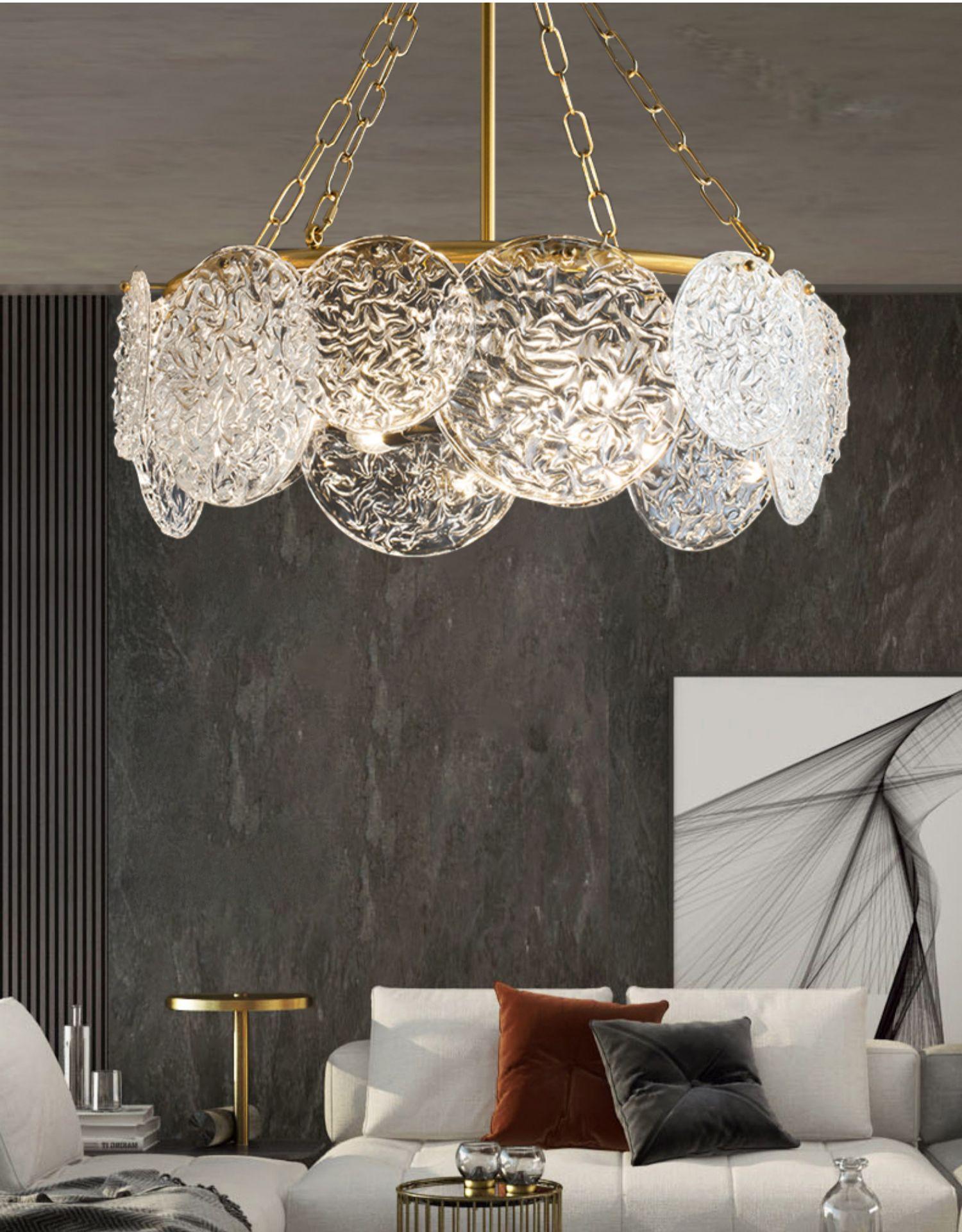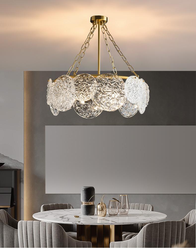 Lámpara de araña de cristal redonda sencilla de lujo y luz posmoderna para sala de estar, estilo nórdico italiano creativo, para restaurante, dormitorio, estudio, estilo francés