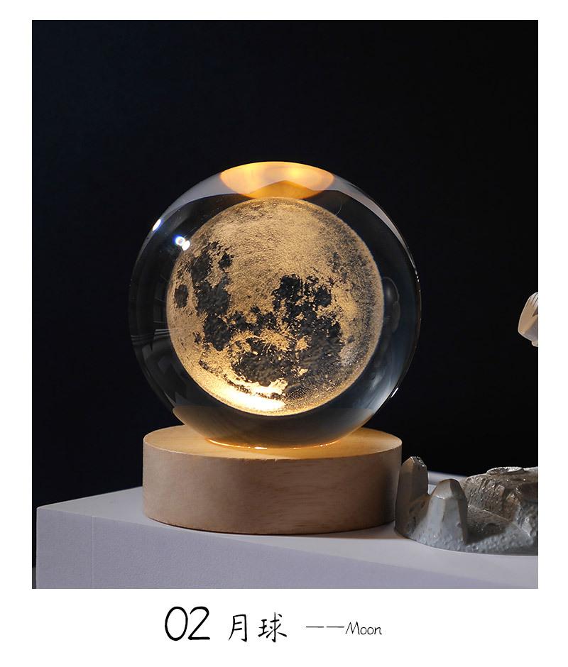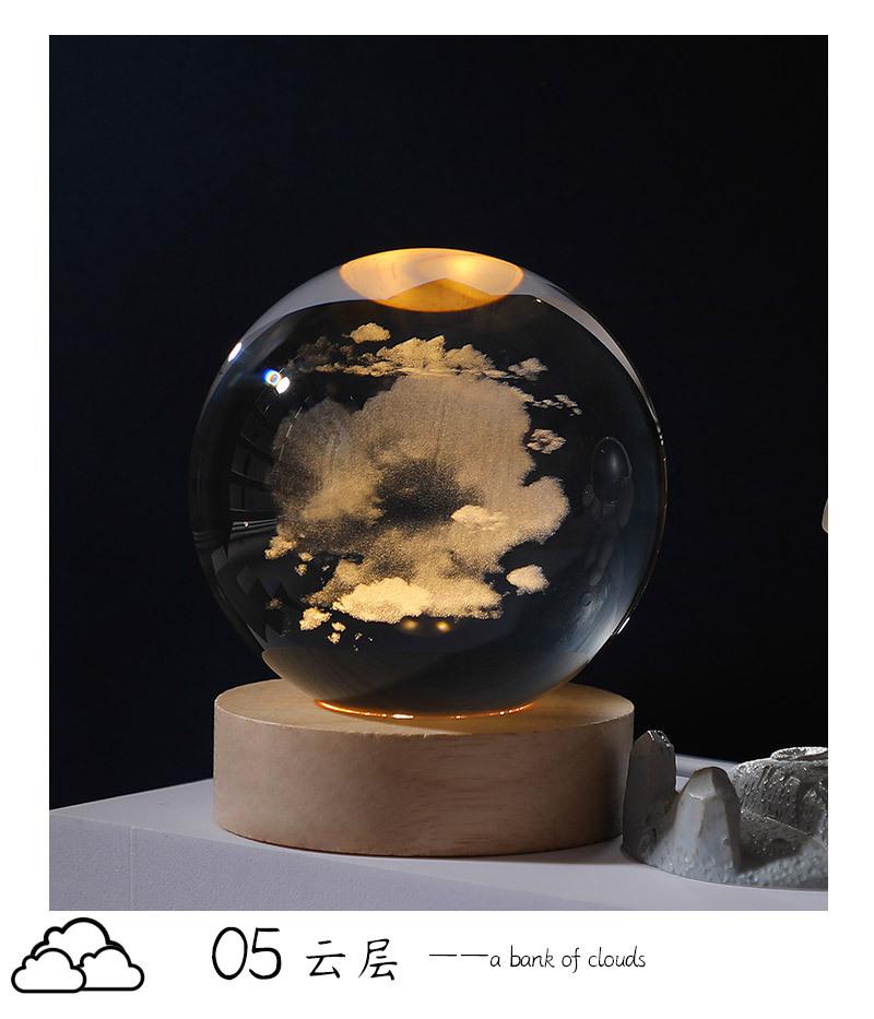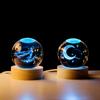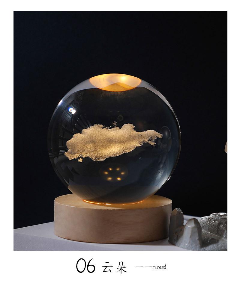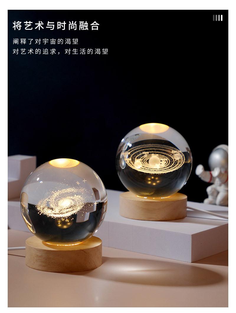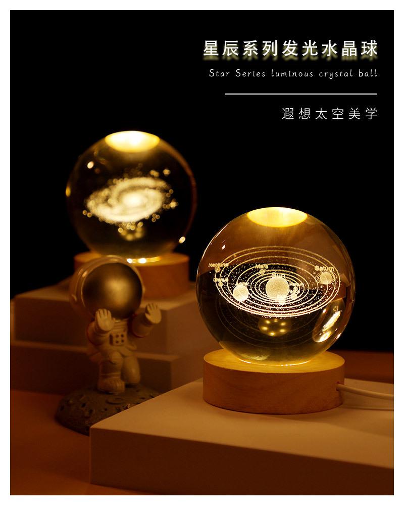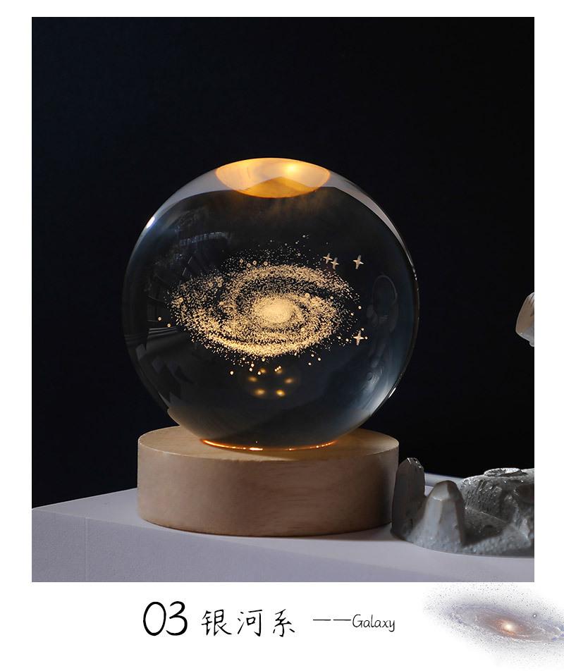 Bola de cristal con forma de galaxia 3D, base luminosa de madera, luz nocturna creativa, adornos de cristal de escritorio, regalos para estudiantes