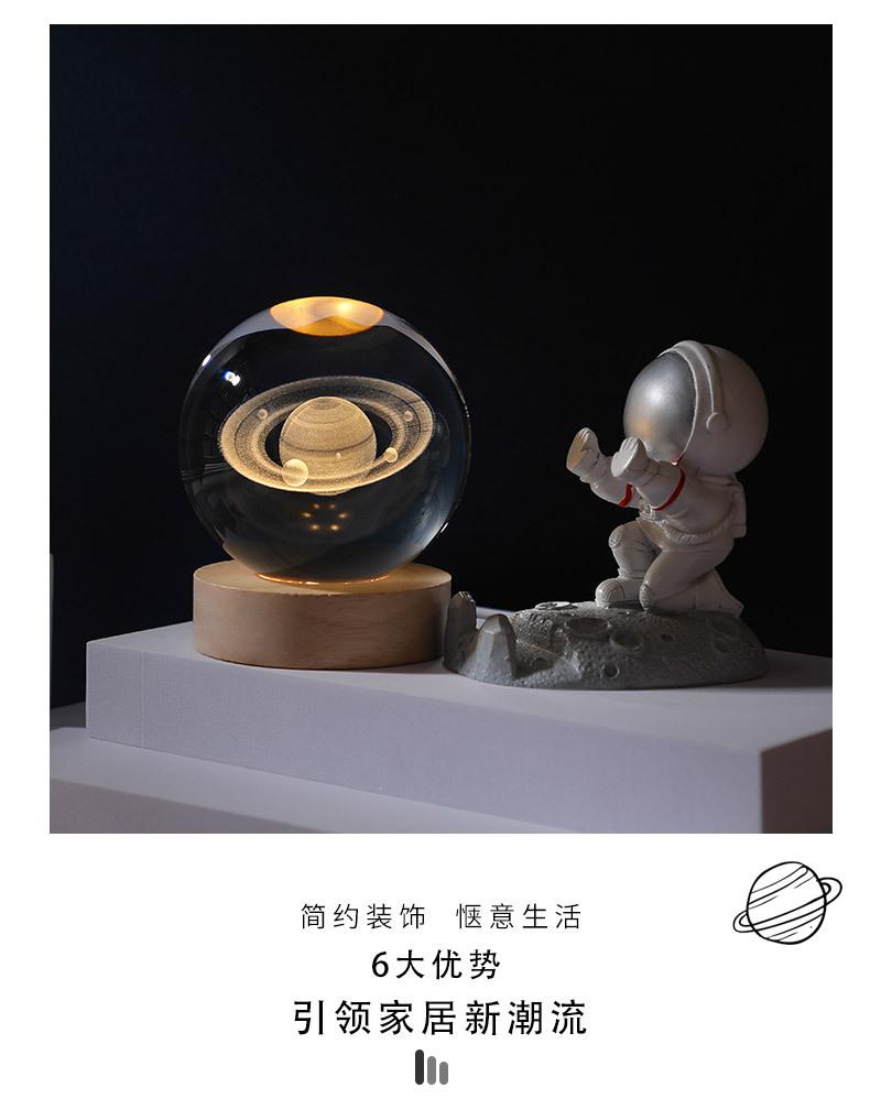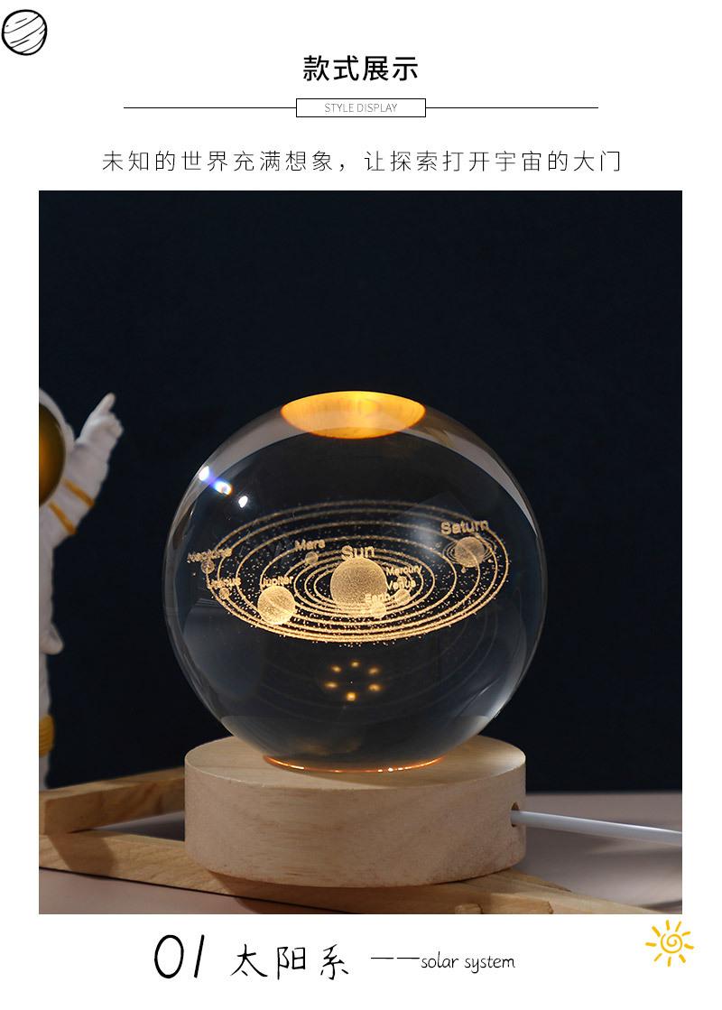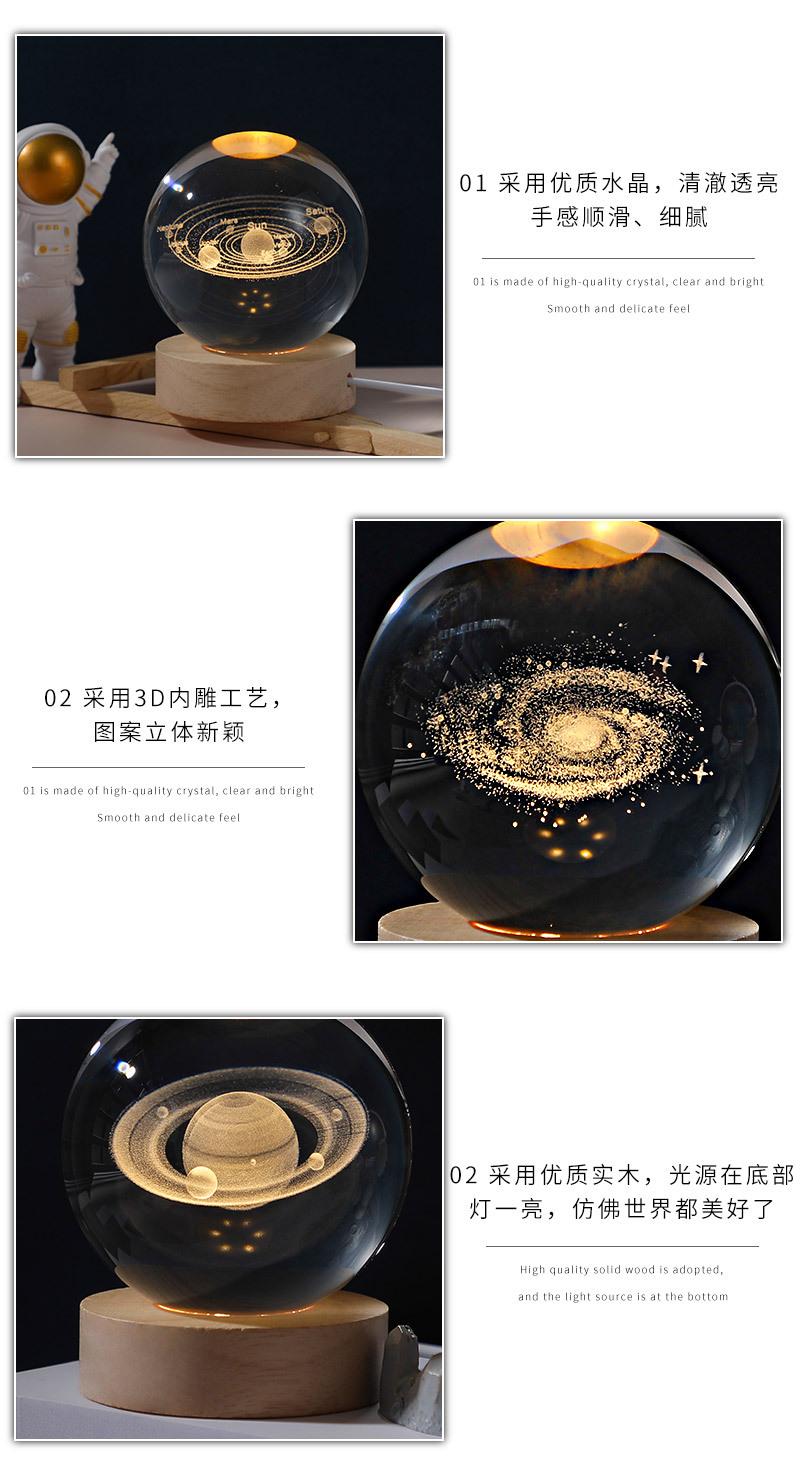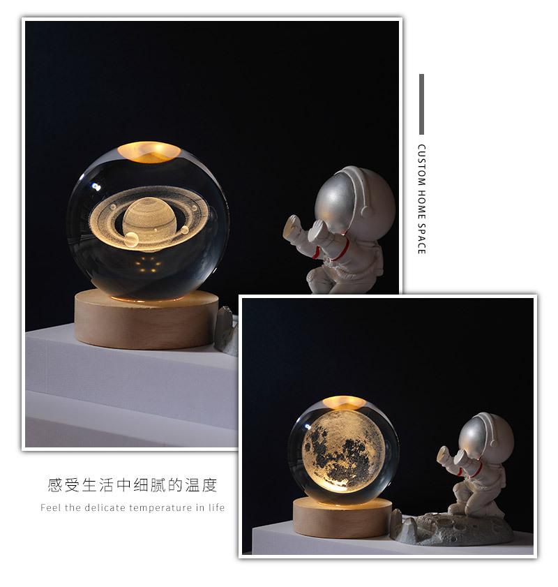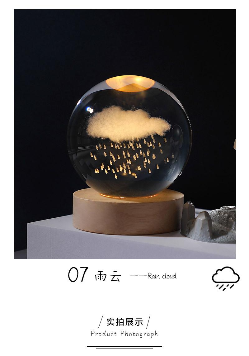 Bola de cristal con forma de galaxia 3D, base luminosa de madera, luz nocturna creativa, adornos de cristal de escritorio, regalos para estudiantes