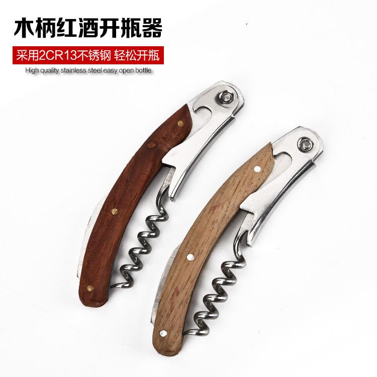 Venta directa de fábrica abridor de botellas de vino hipocampo con mango de madera multifuncional abrelatas herramienta abridor de vino al por mayor