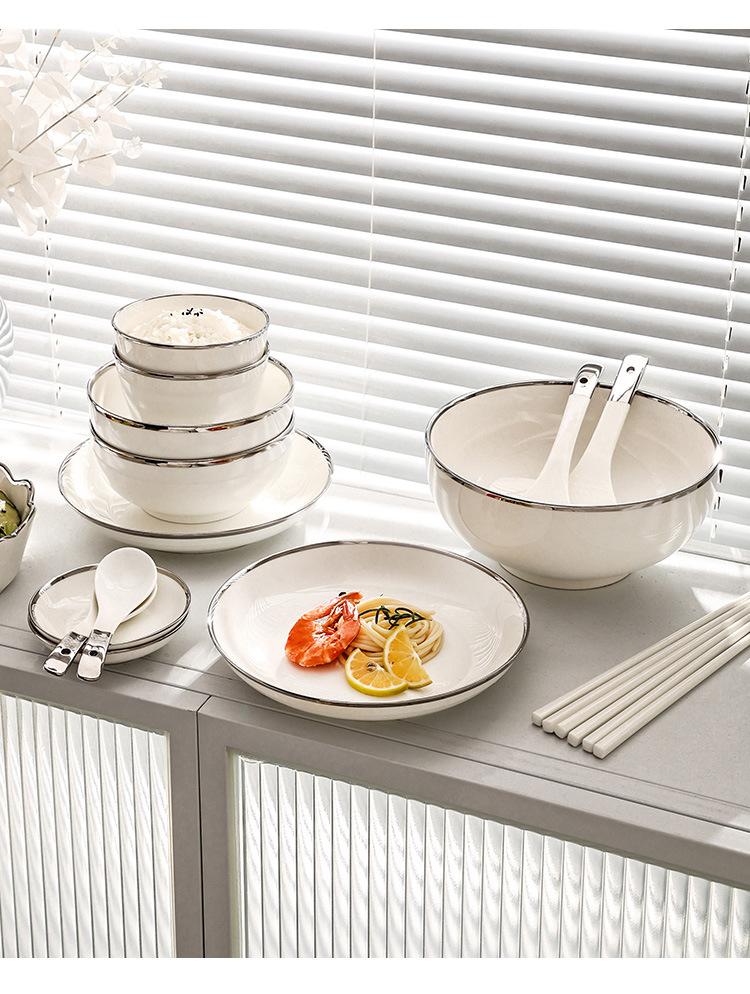 Plato de cerámica de lujo ligero estilo ins, apto para vajilla doméstica, tazón de arroz, plato de aspecto elegante, plato de carne occidental.