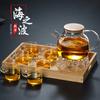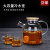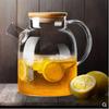 Olla con tapa de bambú de gran capacidad Botella de vidrio de borosilicato alto para agua fría Tetera de flores y frutas Filtro de resorte Tapa de bambú Tetera de flores