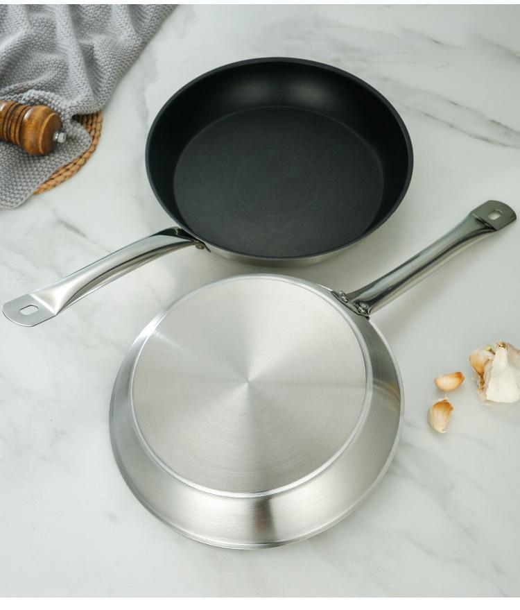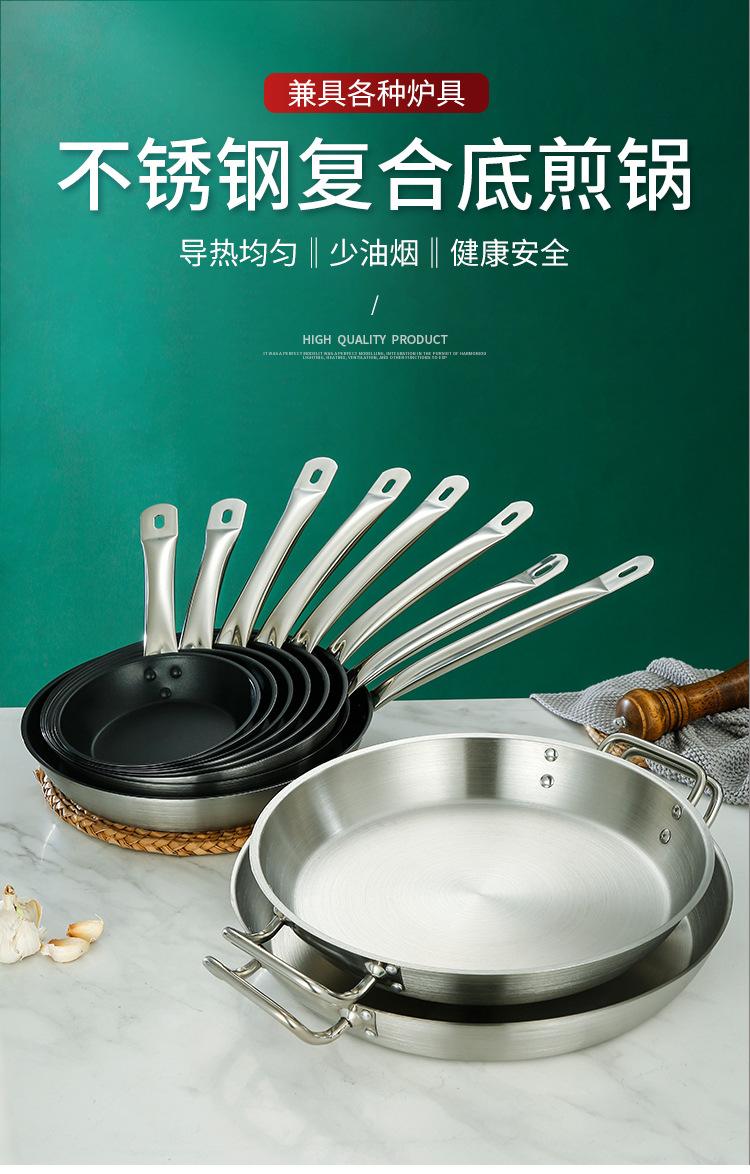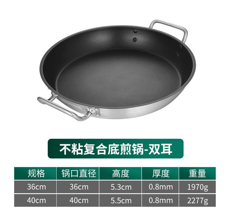 Sartén Antiadherente Sartén de un Mango Sartén de Doble Mango Acero Inoxidable Sartén Parrilla para Bistec Mango de Hierro Teflón Fondo Plano Cocina de Inducción Sartén