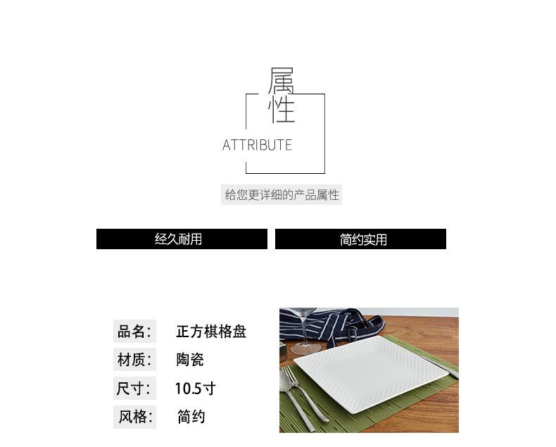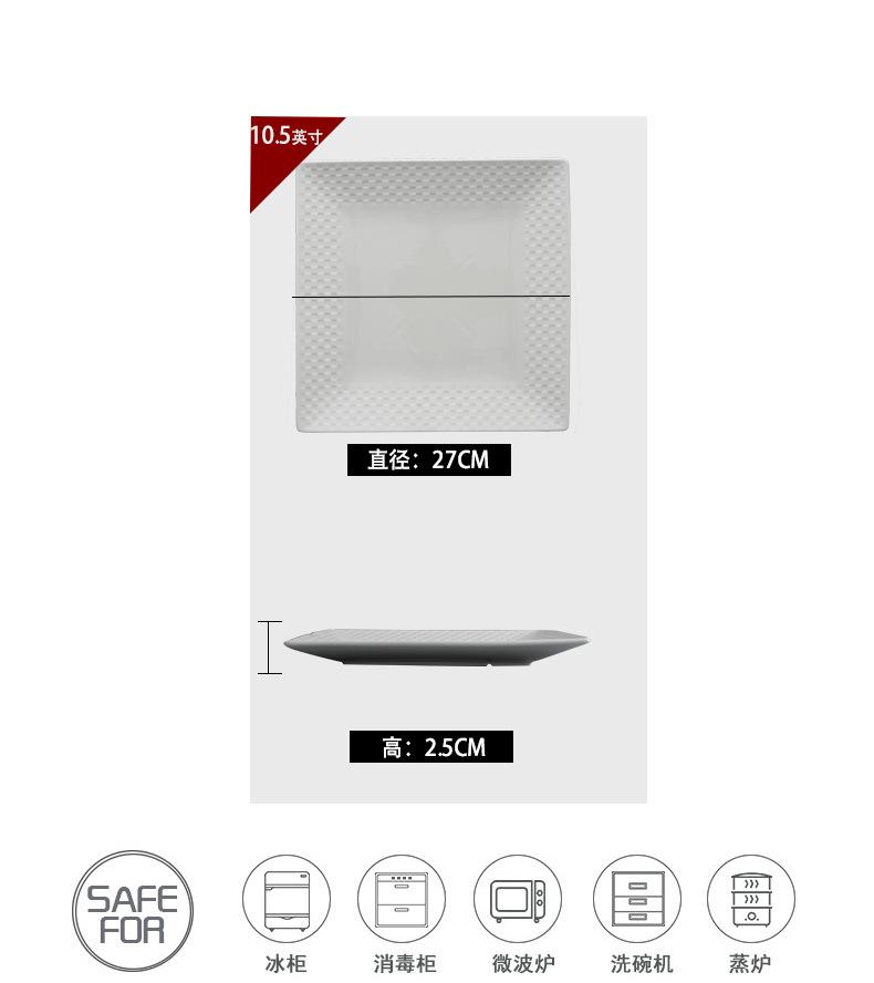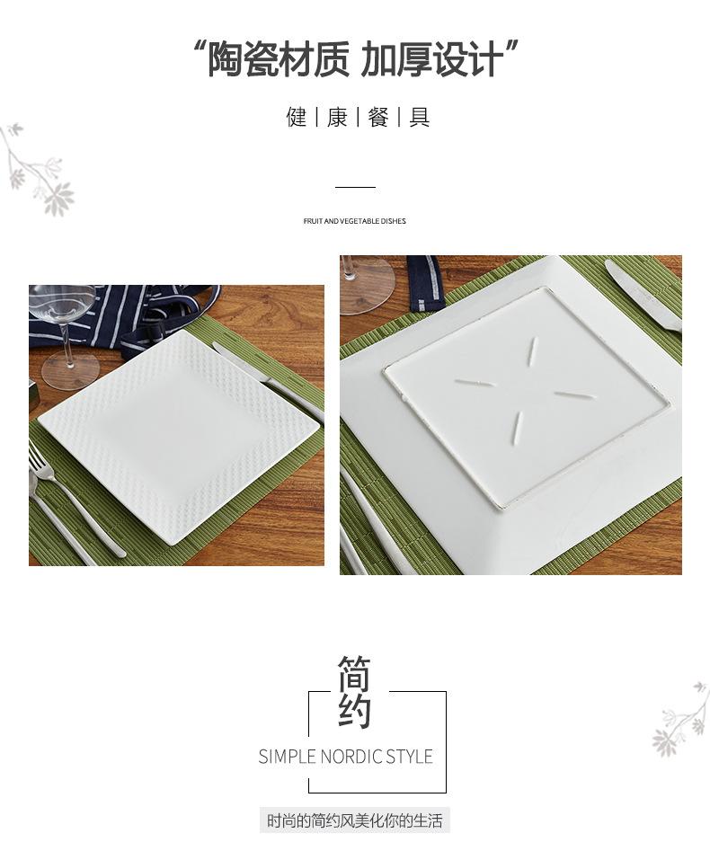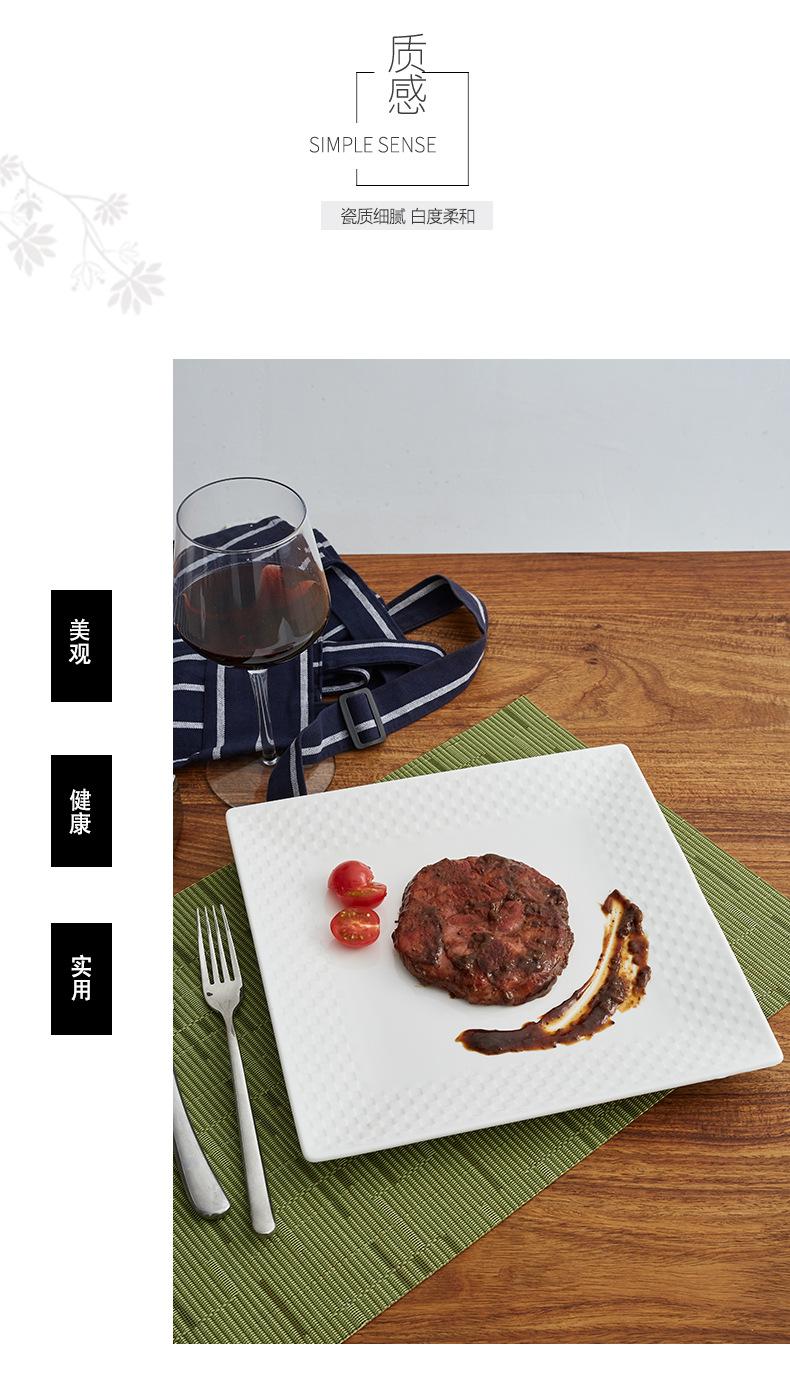 Plato de Cerámica para Bistec Vajilla Occidental Plato Cuadrado Plato Hondo Plato Principal Plato Cuadrado de Cerámica para Hotel