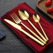 Cubiertos de acero inoxidable de alta calidad, cuchillo para carne, tenedor y cuchara, juego de tres piezas de cuchara de oro 304, cuchara de postre para niños