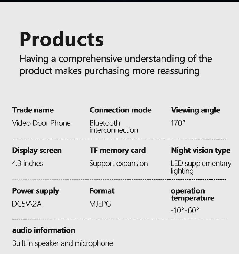 Sin necesidad de una red, se puede realizar un timbre con videoportero móvil a una distancia de 100 metros y se puede lograr una conexión de señal efectiva de 50 metros a través de una pared.