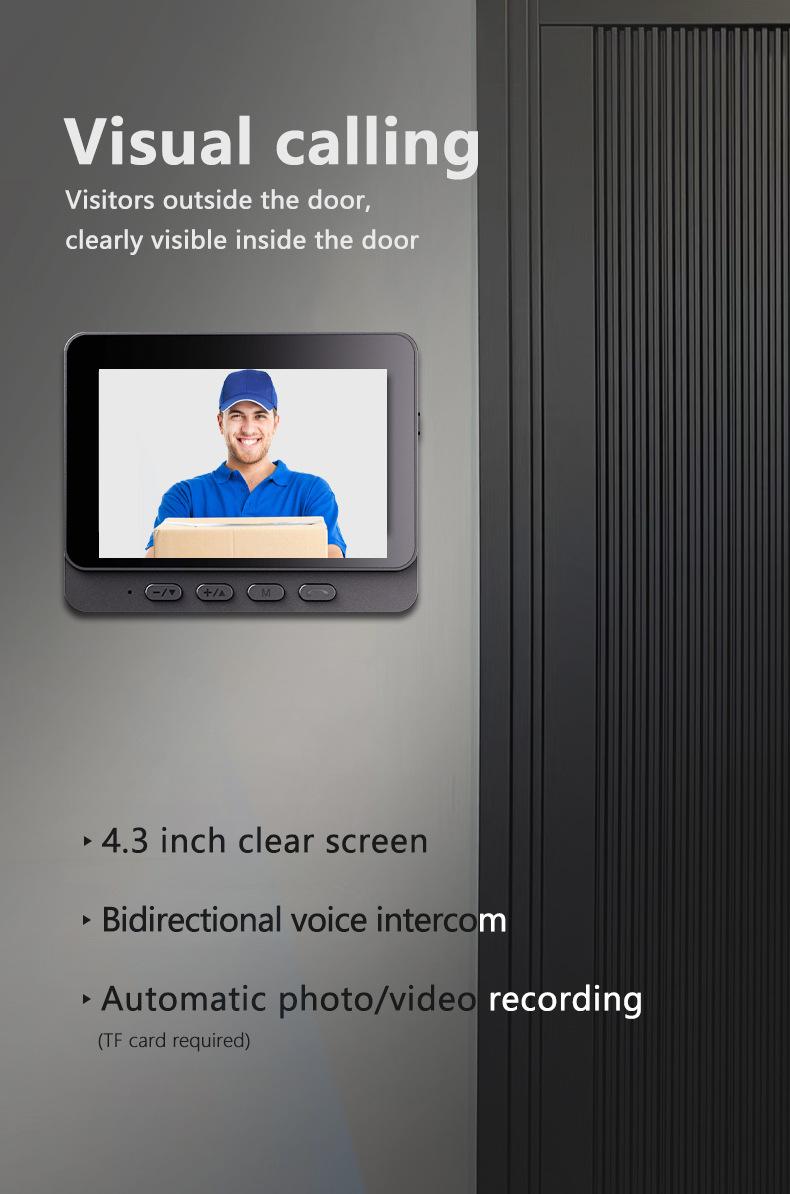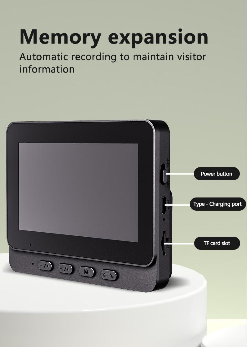 La pantalla interna de alta definición de 4,3 pulgadas no daña la vista y se puede colocar a voluntad (con un soporte tipo marco de fotos) o instalar en cualquier lugar (con accesorios de instalación).