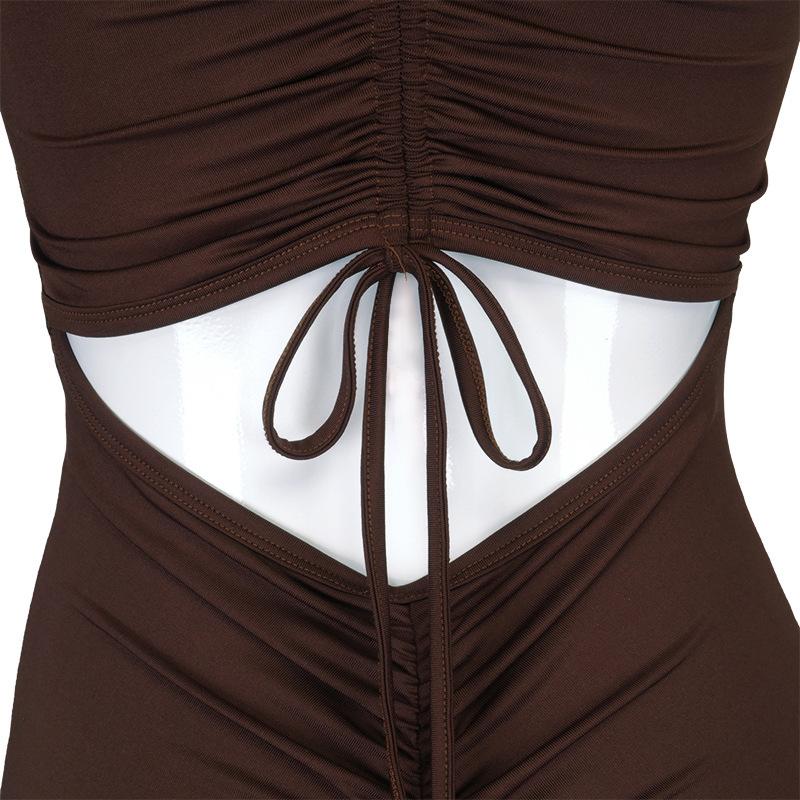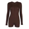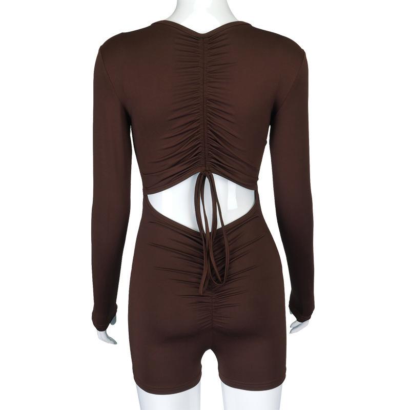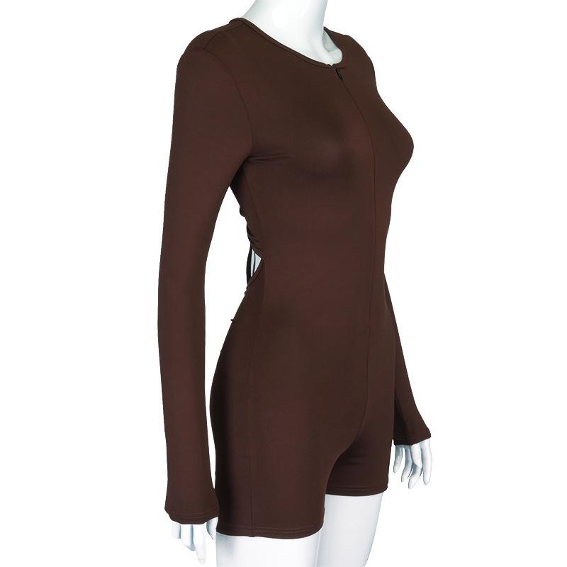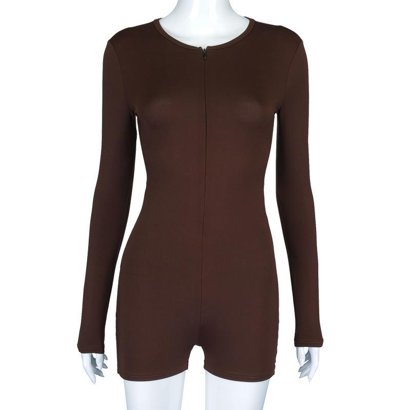 Mono de Otoño Europeo y Americano para Mujer 2024 con Cremallera de Manga Larga Sencillo Plisado sin Cintura Sexy Color Sólido Cuello Redondo en Stock