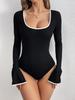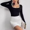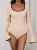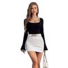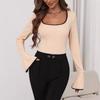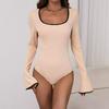 Mono de otoño nuevo europeo y americano con cuello cuadrado y costuras de color sólido con puños de cuerno ajustados, sexy y atractivo para chicas, venta al por mayor