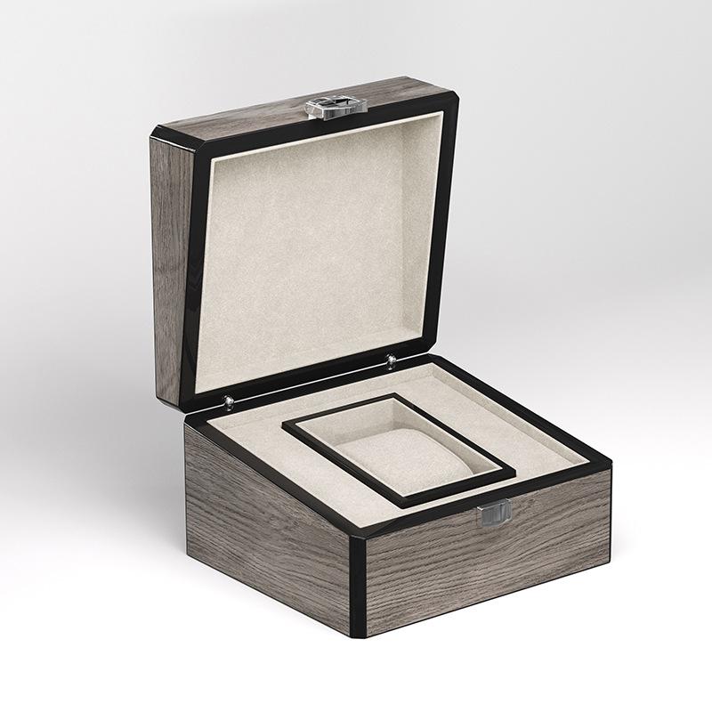 Caja de reloj de alta calidad, caja de embalaje de reloj marrón, gris y negro, caja de madera pintada, caja de embalaje de reloj de alta calidad.