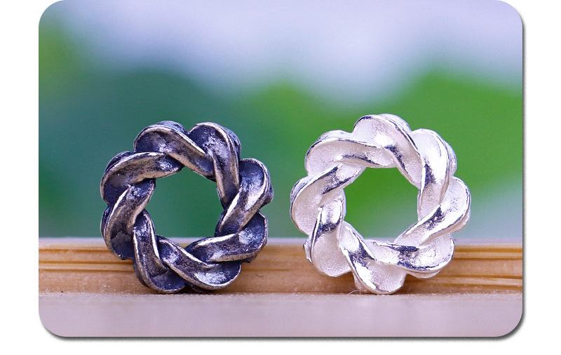Pulsera de aro cerrado con anillo giratorio de plata esterlina S925, accesorios para pulseras, cadena de cuentas DIY.