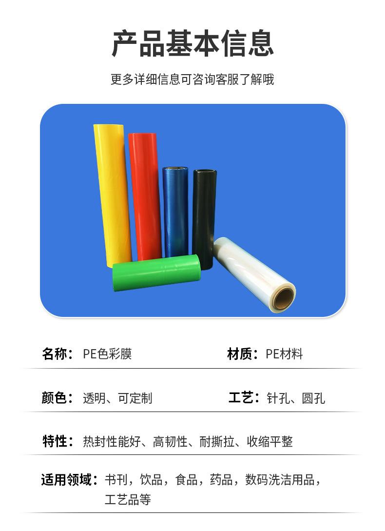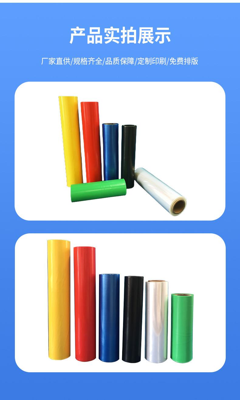 Suministro de fábrica de película de color PE para cartón de bebidas, película termorretráctil, película de envoltura de color, película estirable de embalaje