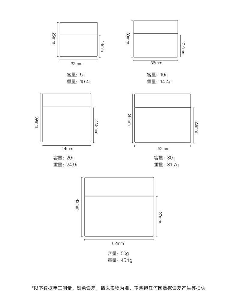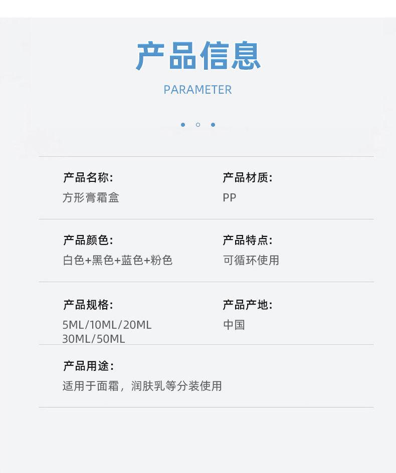 Frasco 5Ml-50Ml Caja Cuadrada de Crema de Doble Capa Caja de Crema Exfoliante PP Crema Facial Loción Paquete de Prueba Sub-Botella