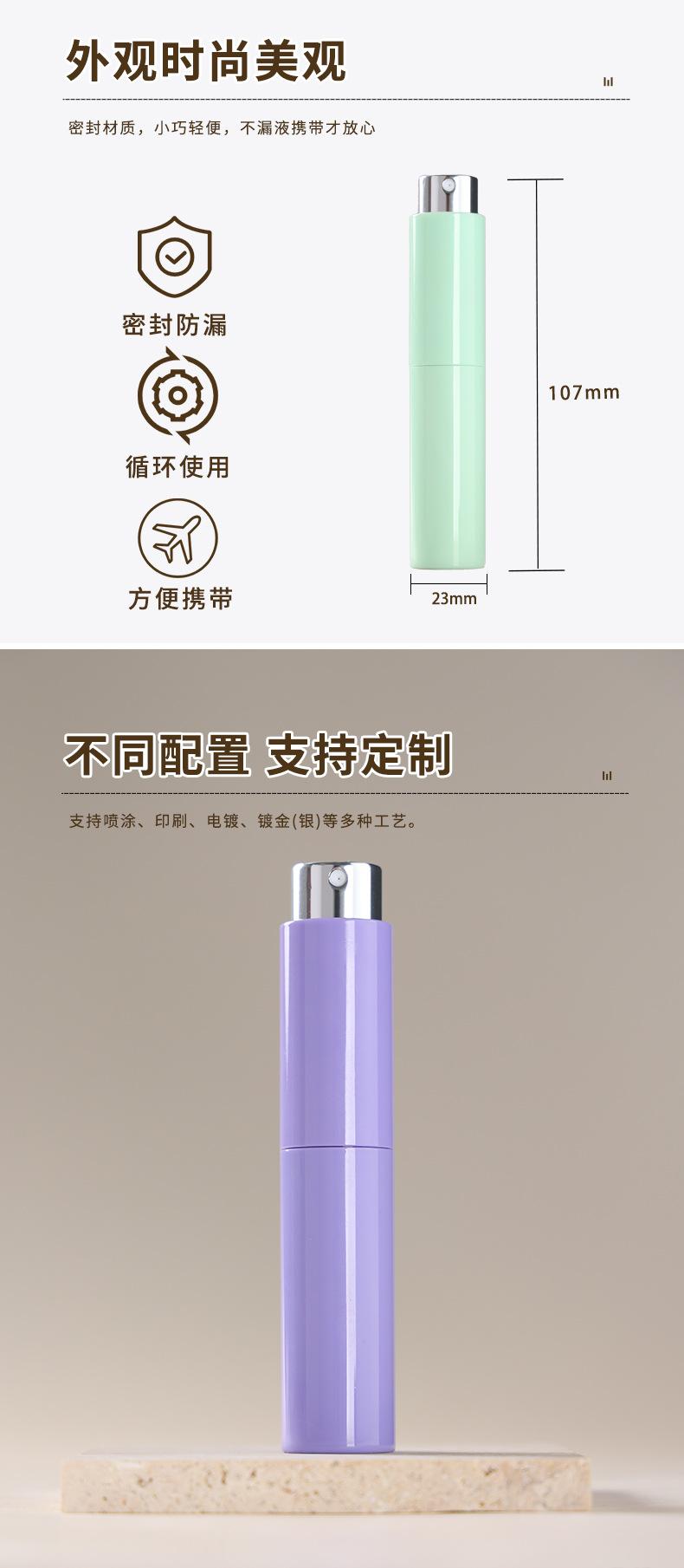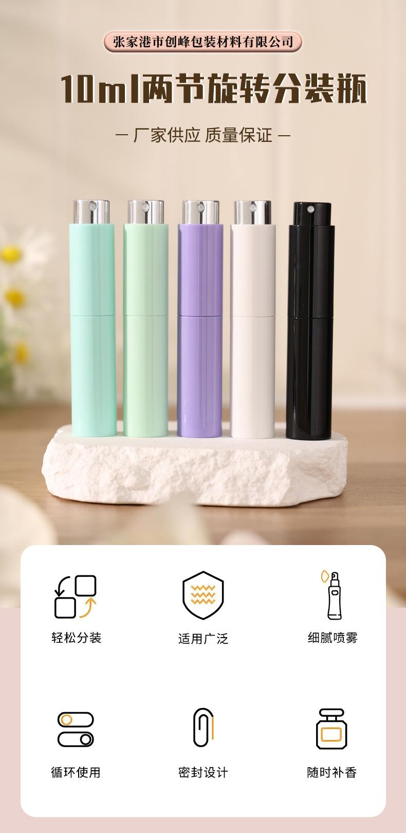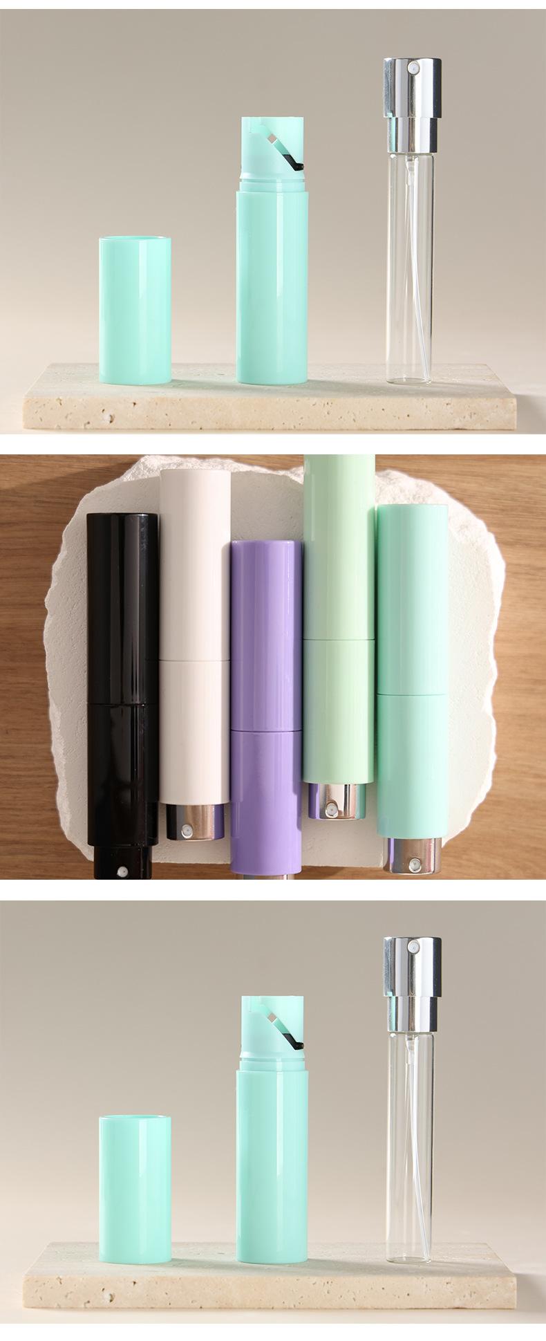 Botella de Perfume Giratoria de Dos Secciones de 10 ml, Botella de Muestra, Botella Recargable de Perfume, Cabezal de Spray, Botella Vacía Tipo Presión, Botella de Vidrio
