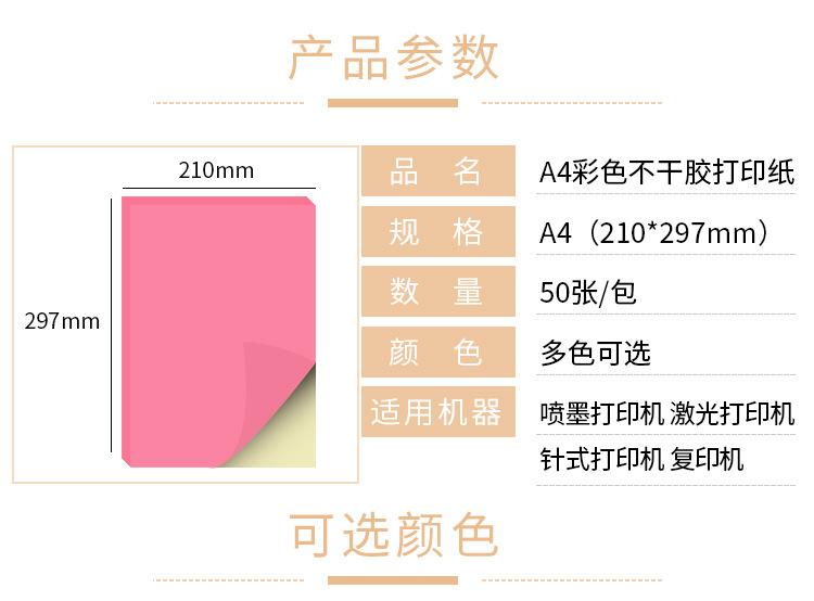 Venta al por mayor de papel de impresión adhesivo en color A4, etiqueta adhesiva A4, papel kraft, adhesivo en blanco, escritura rosa, amarillo y azul