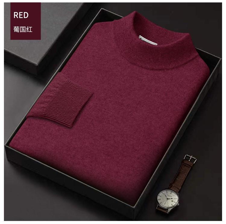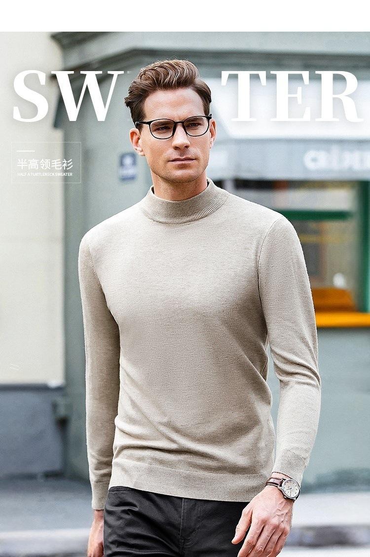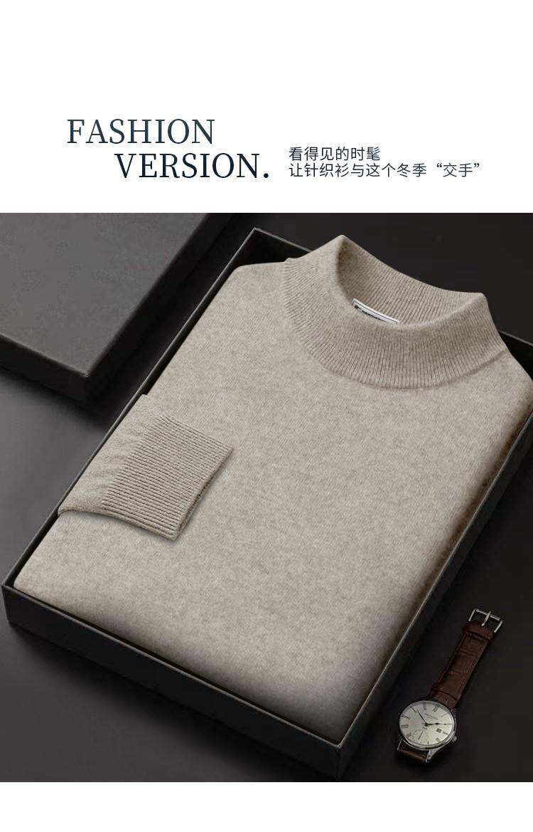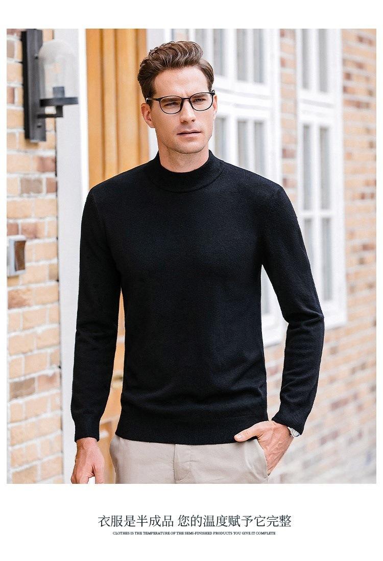 Suéter de lana pura de cuello medio alto para hombre, de otoño e invierno, cálido, ligero, de lujo, moderno, de talla grande
