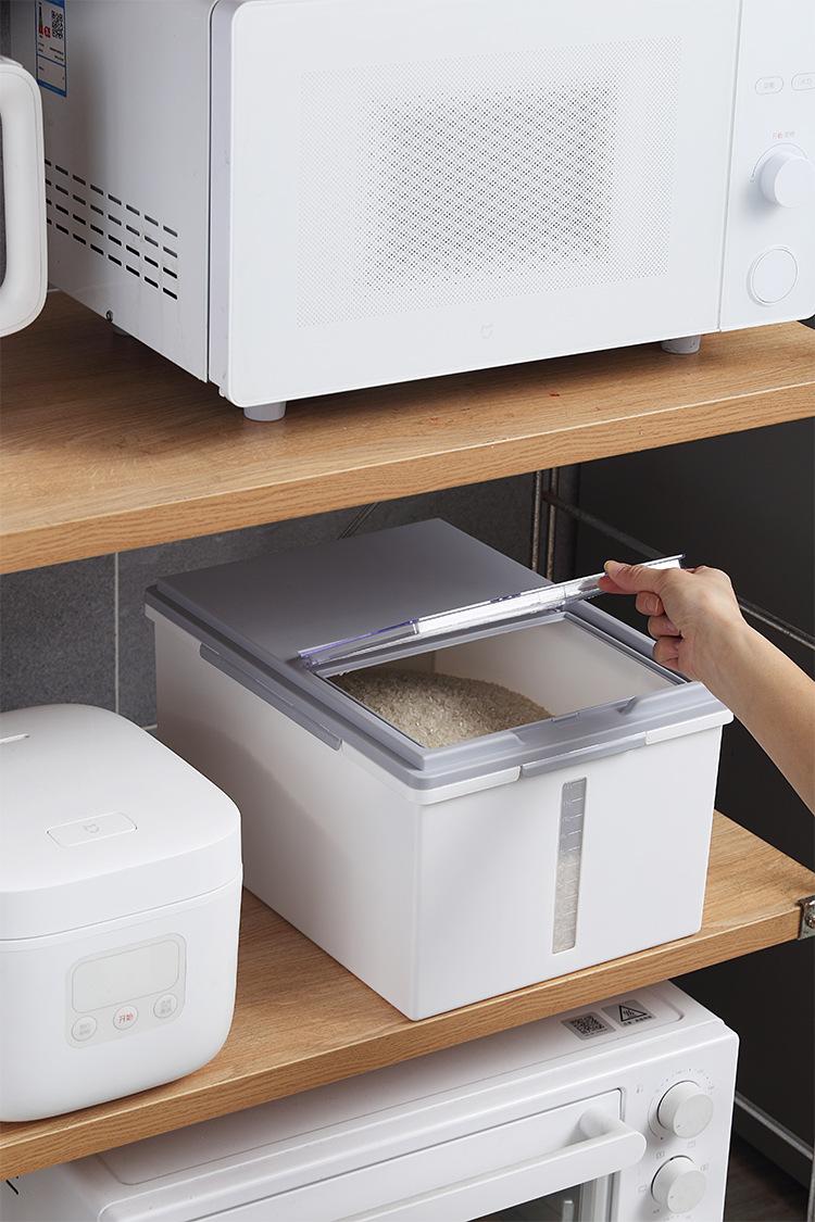 Cubo de arroz tipo concha para el hogar a prueba de humedad y de insectos, almacenamiento, cocina, caja de plástico para almacenar arroz con tapa, almacenamiento de harina, tarro de arroz