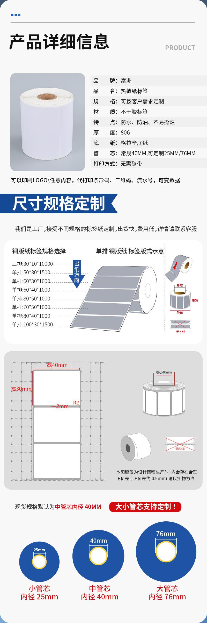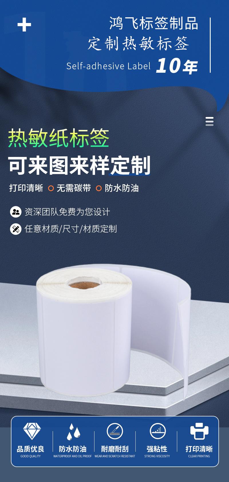 Etiqueta de papel térmico de tres pruebas, papel de código de barras, papel de impresión, papel adhesivo térmico
