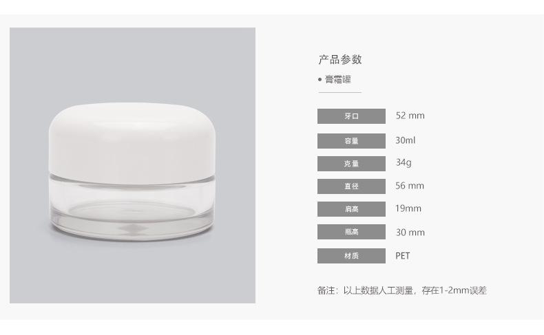 Compra Frasco de crema de pared gruesa de 30 g, tarro para mascarilla, frasco de crema de pequeña capacidad, suministro de moldeo por inyección de PET, sello multicolor al por mayor en Joom.pro