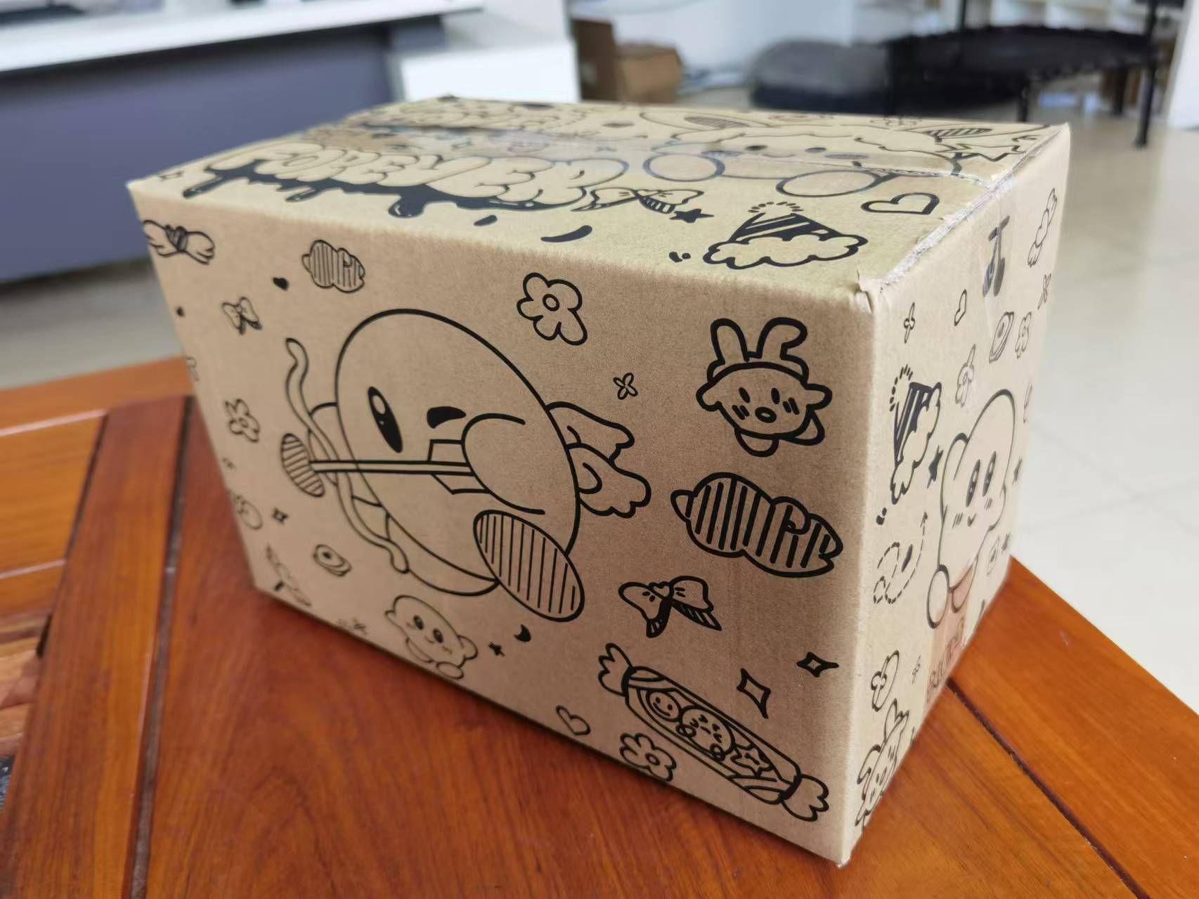Caja de Cartón Corrugado de Cinco Capas Ultra Dura Negra de Dibujos Animados Sea Cartón Pequeño al por Mayor para Embalaje Logístico Postal Express