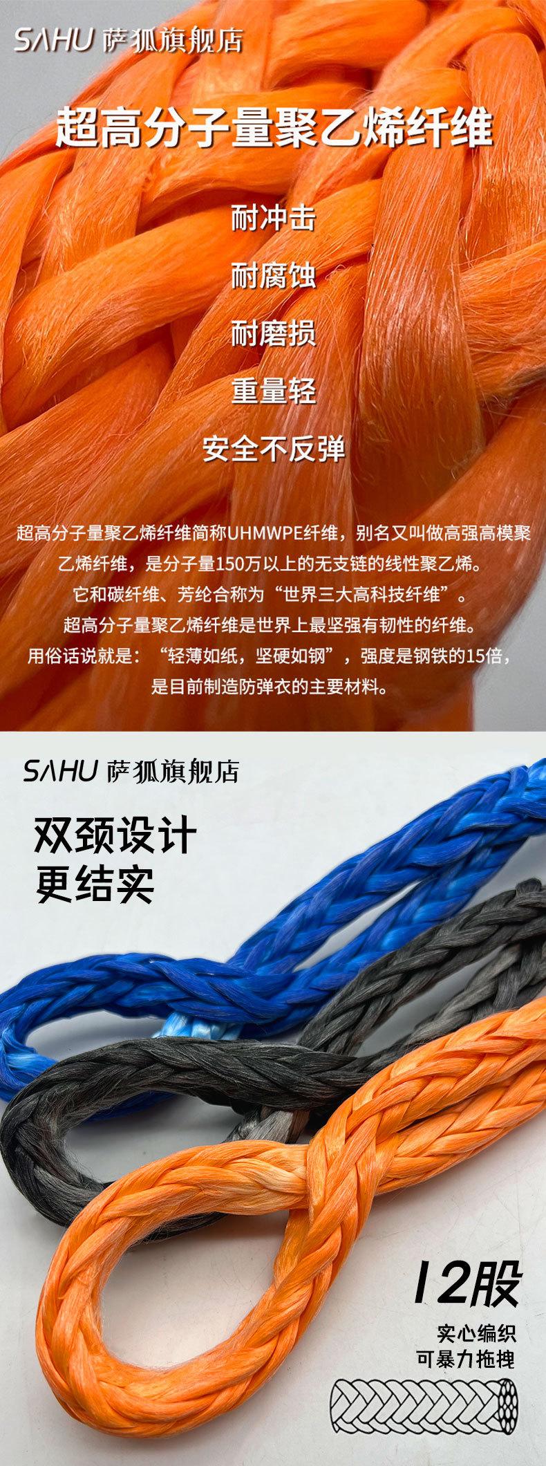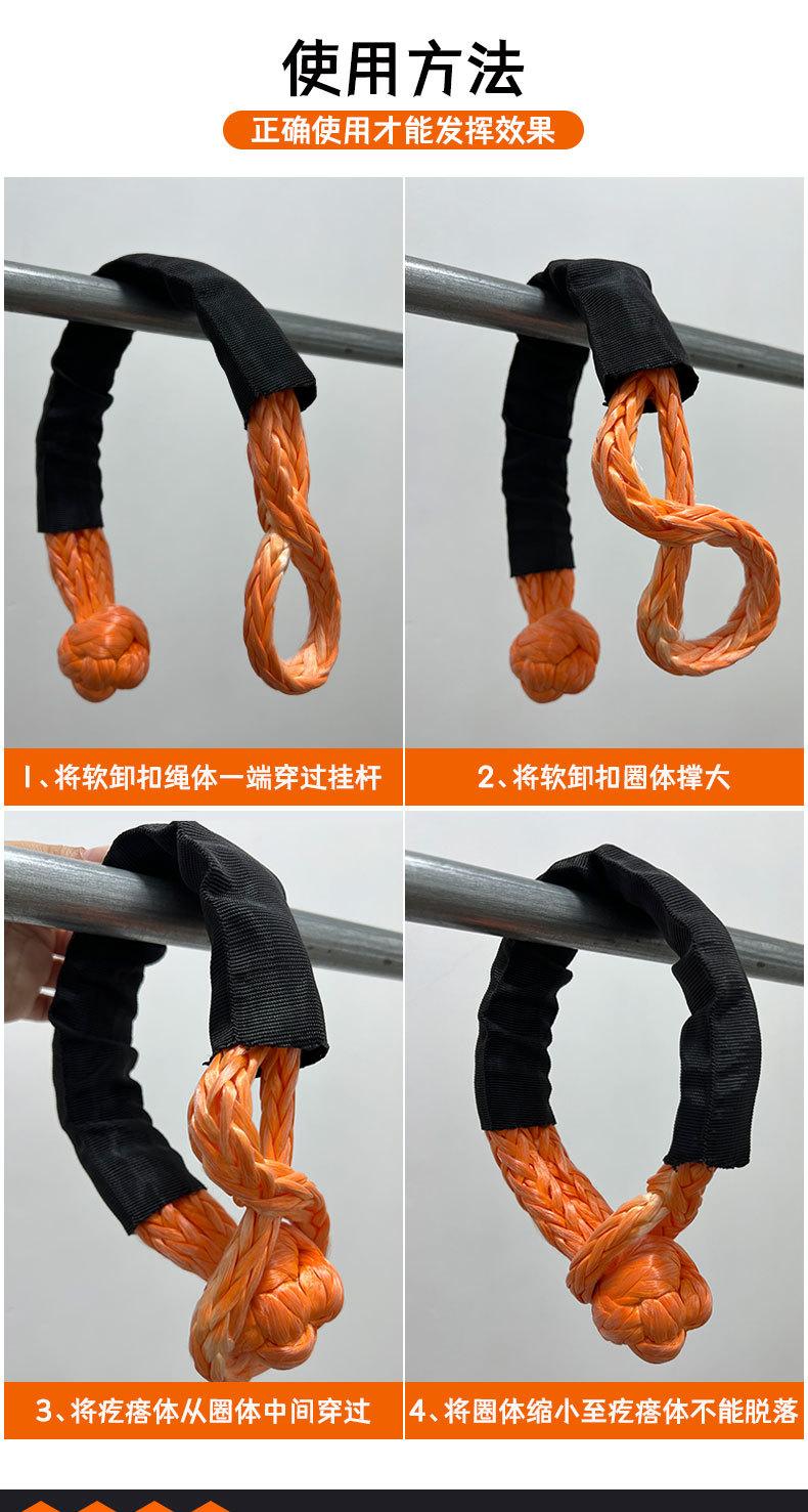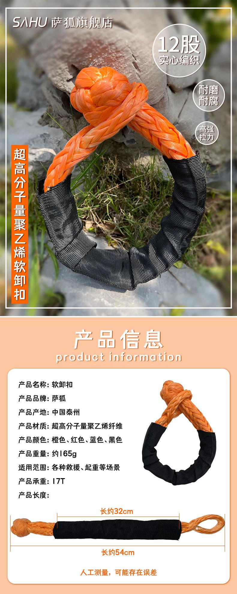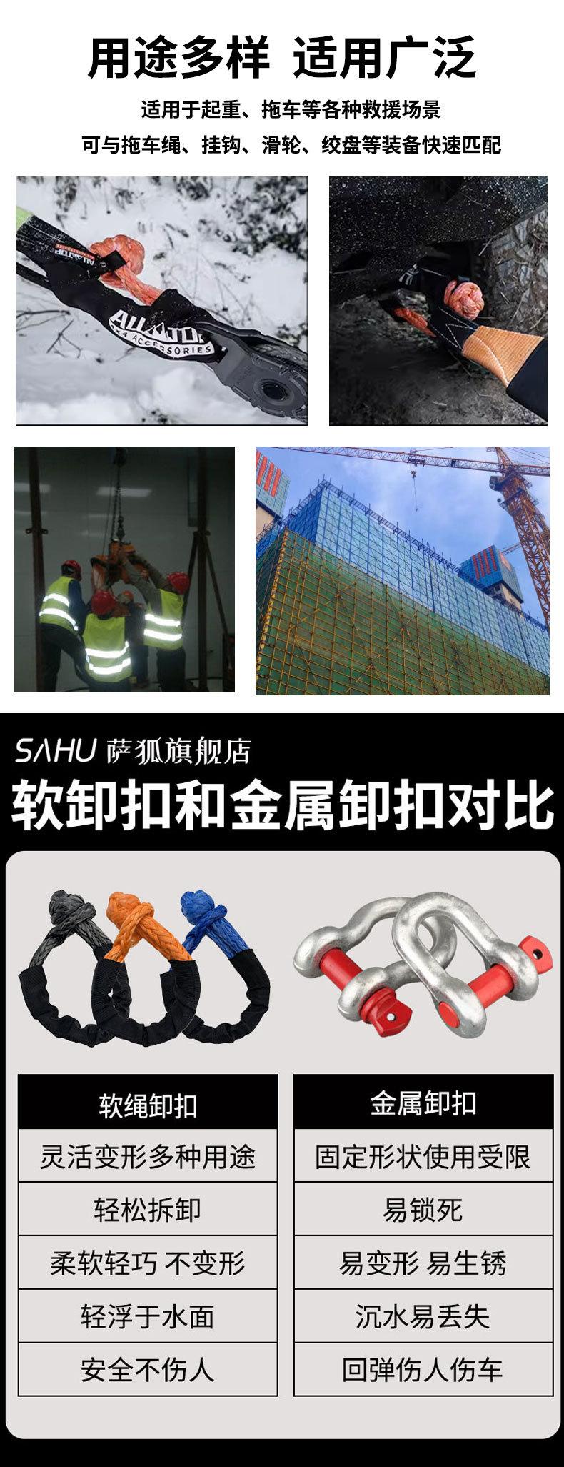 Eslinga de gancho de tracción de elevación cuerda con hoyuelos grillete suave cuerda de remolque hebilla de rescate cuerda de cabrestante gancho U modificación alta resistencia 17T