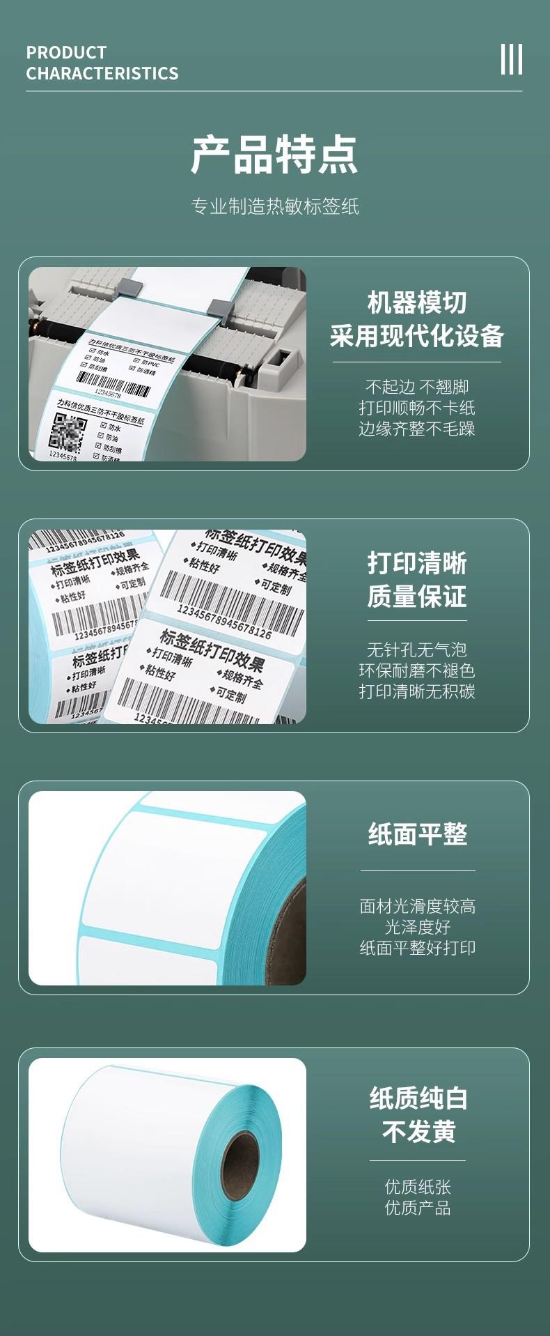 Papel Térmico Tres Pruebas Etiqueta Adhesiva en Blanco Papel para Impresora de Código de Barras Express Supermercado Código de Barras Tira Código