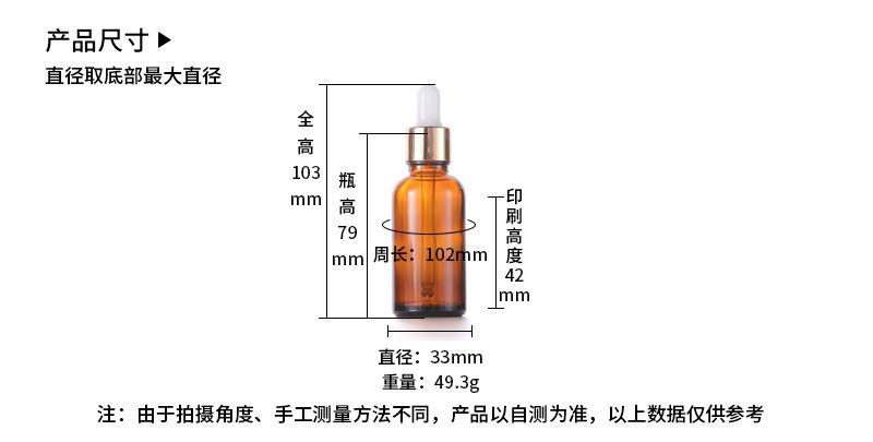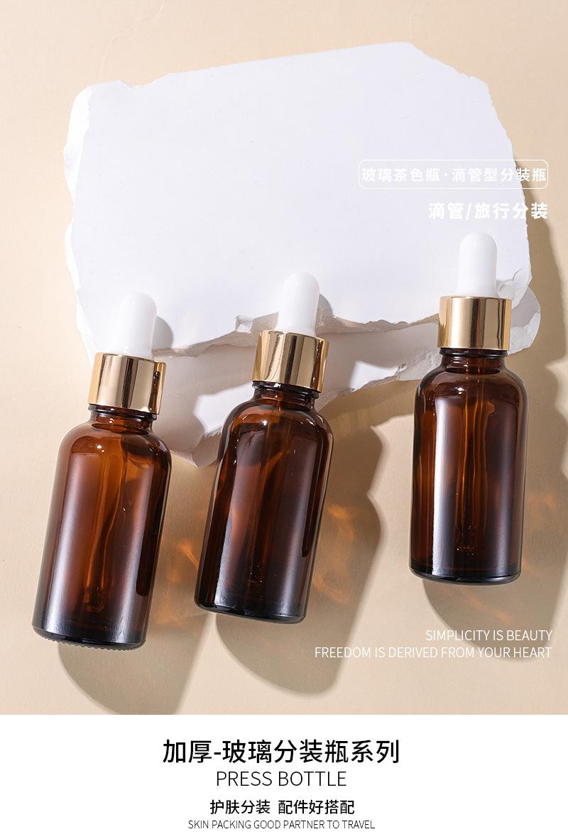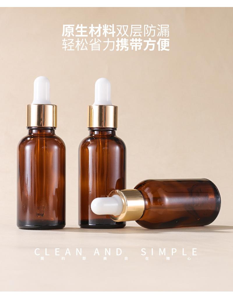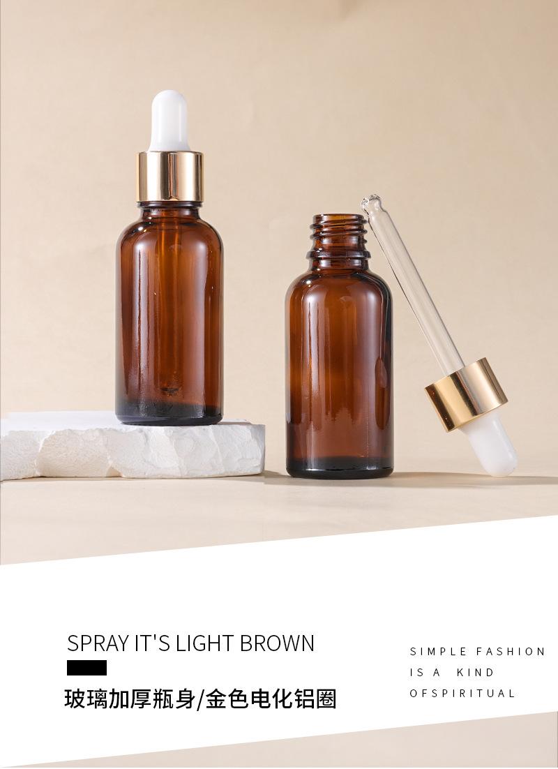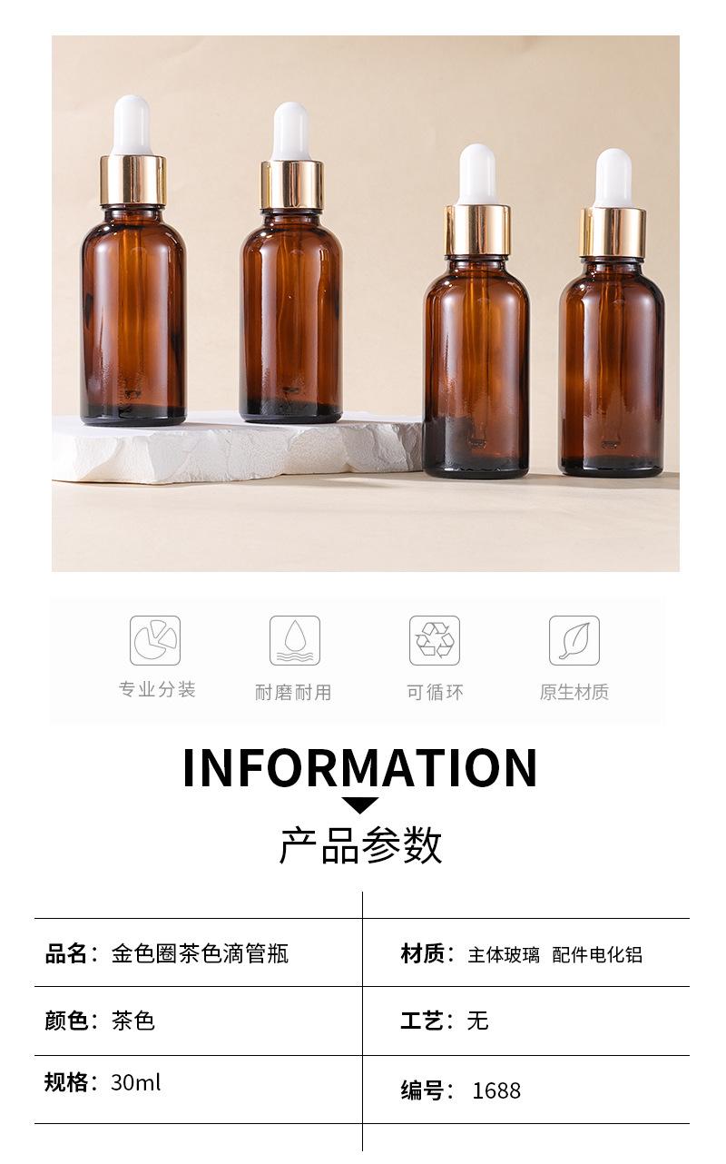 Botella de esencia con gotero de vidrio marrón con anillo dorado de 5-100 ml, disponible en stock transfronterizo.