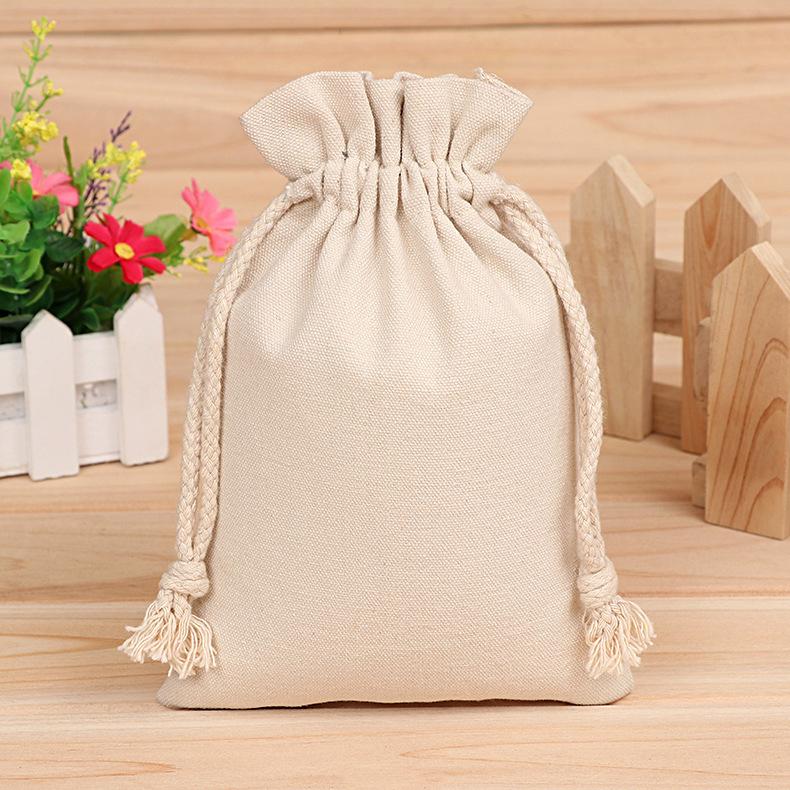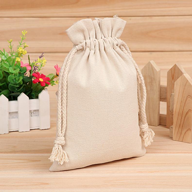Compra Bolsa de lona con cordón, venta al por mayor, de algodón con cordón, para joyería, pequeña bolsa de tela de color sólido, bolsa de almacenamiento en blanco, se puede imprimir el logotipo al por mayor en Joom.pro