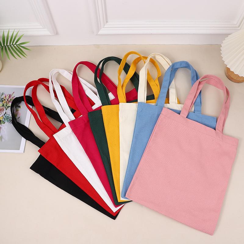 Bolso Tote de Lona Simple Estilo Ins Bolso de Algodón Colorido para Tutorías de Estudiantes Bolso de Lona Se Puede Imprimir con Logotipo Portátil