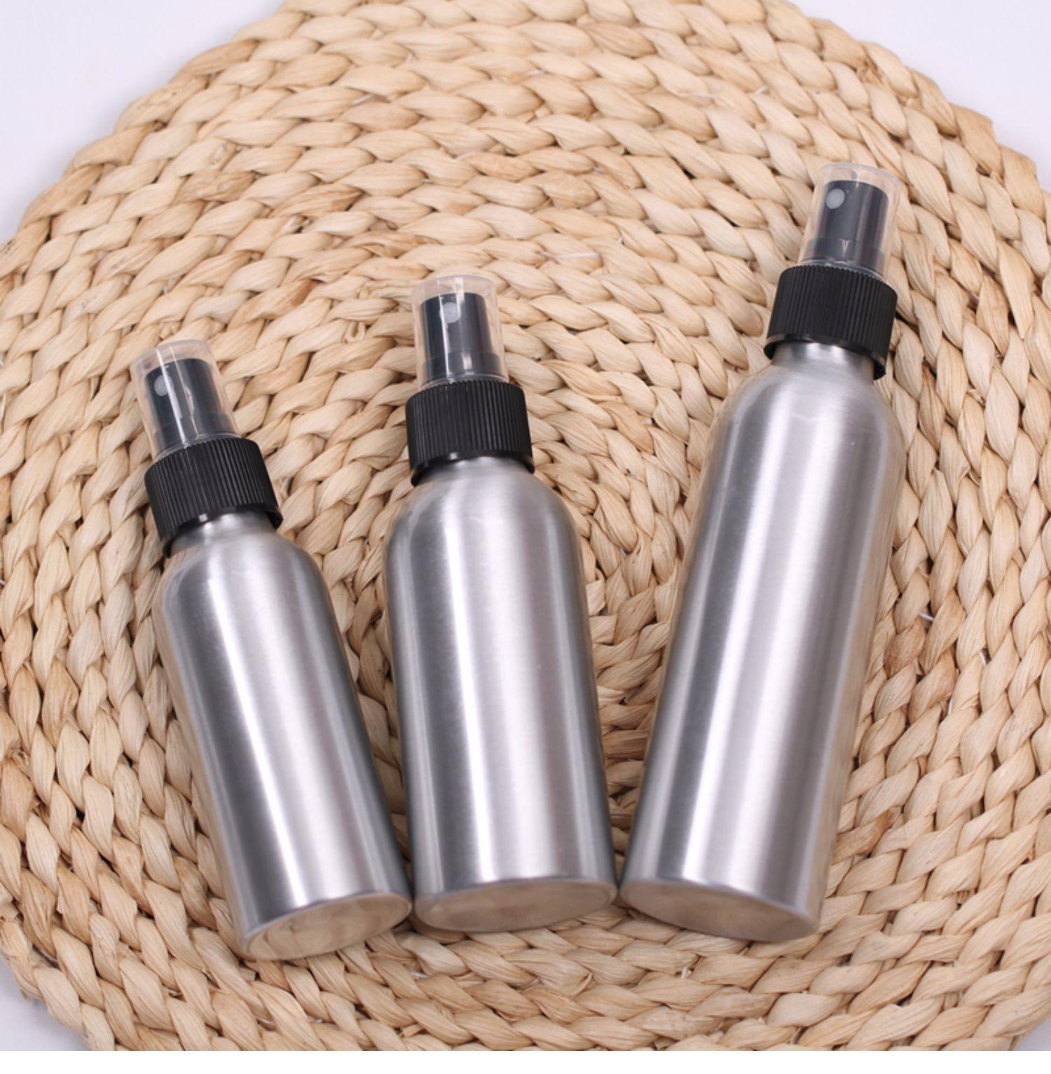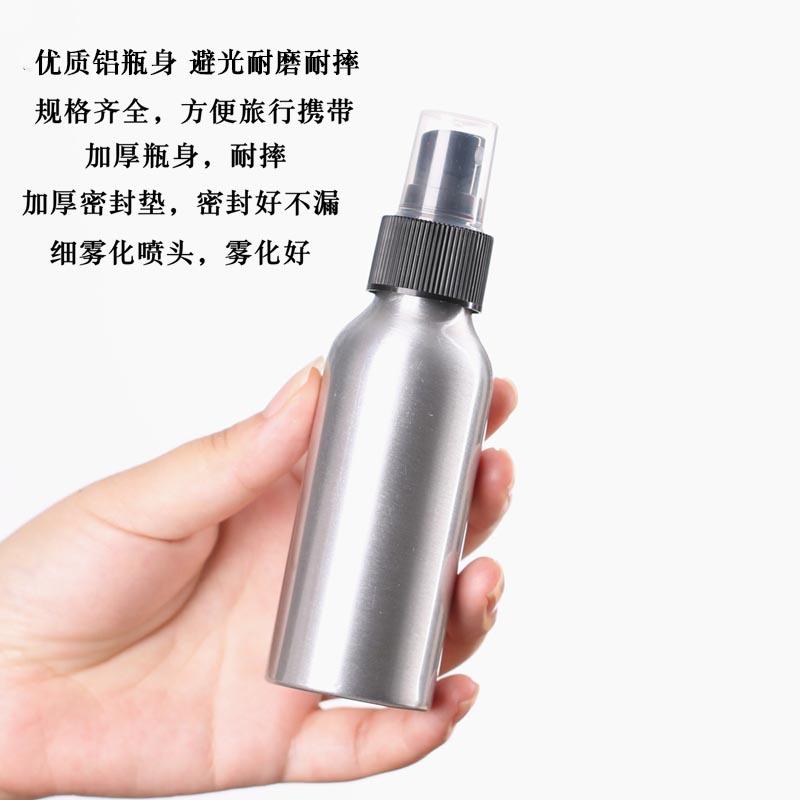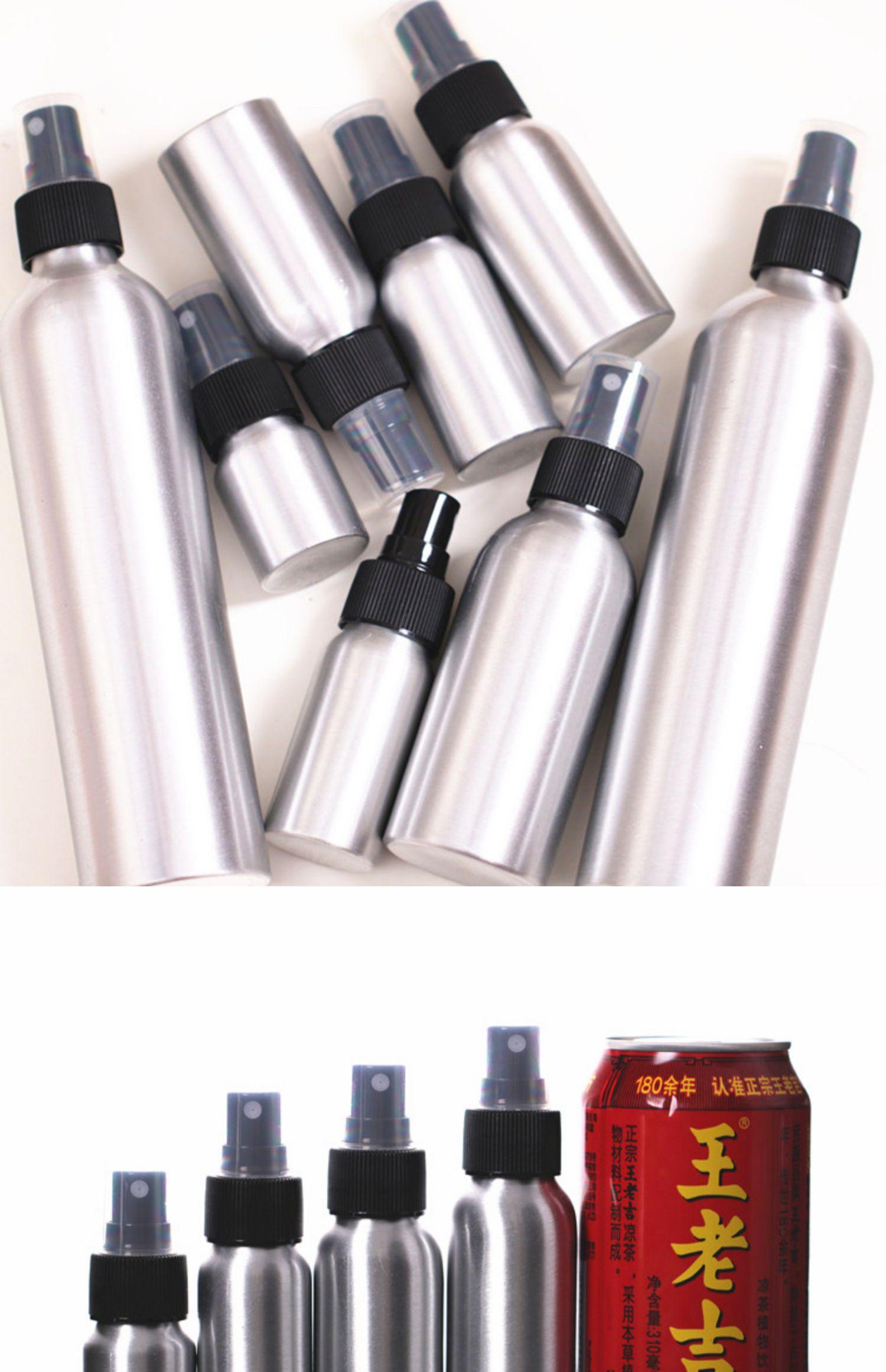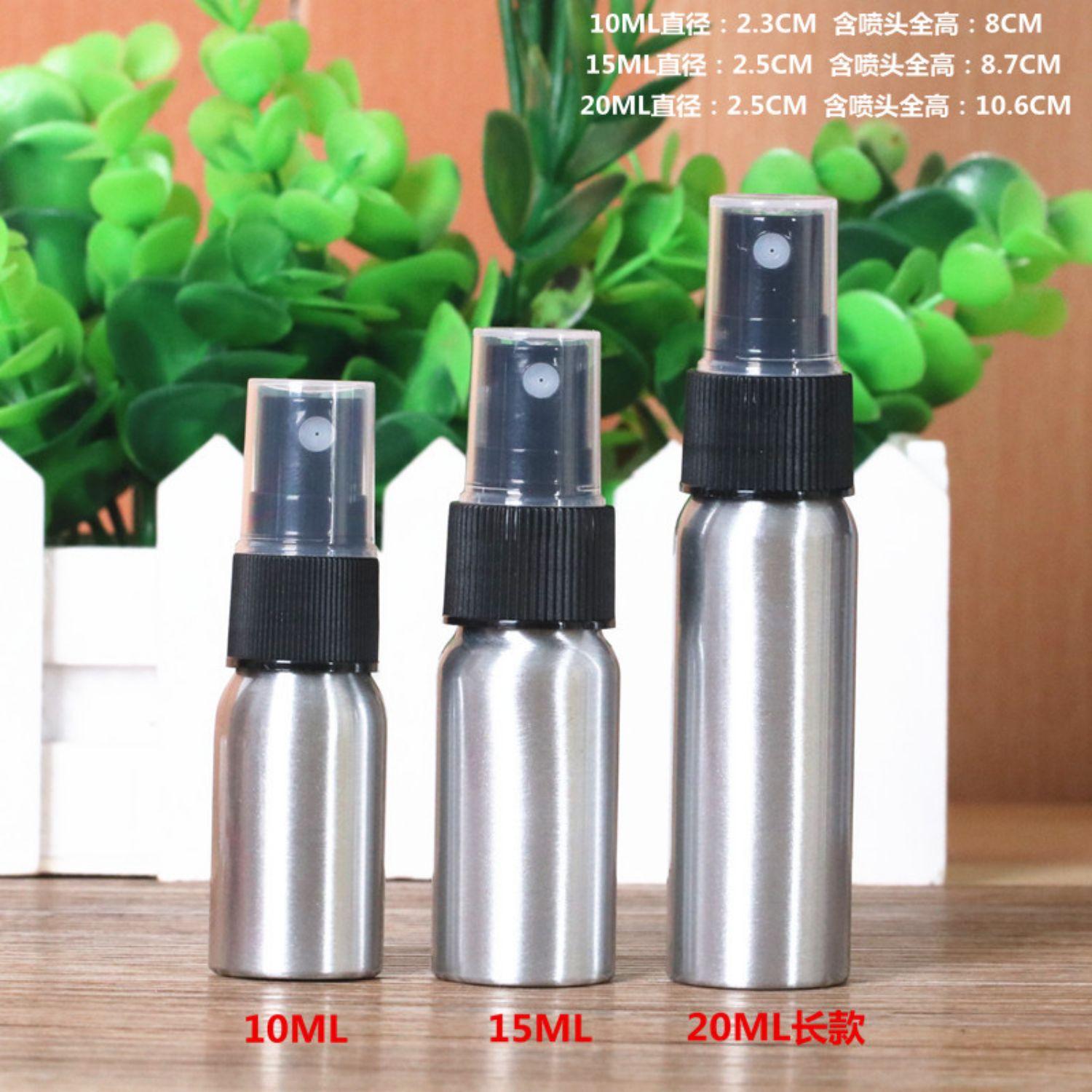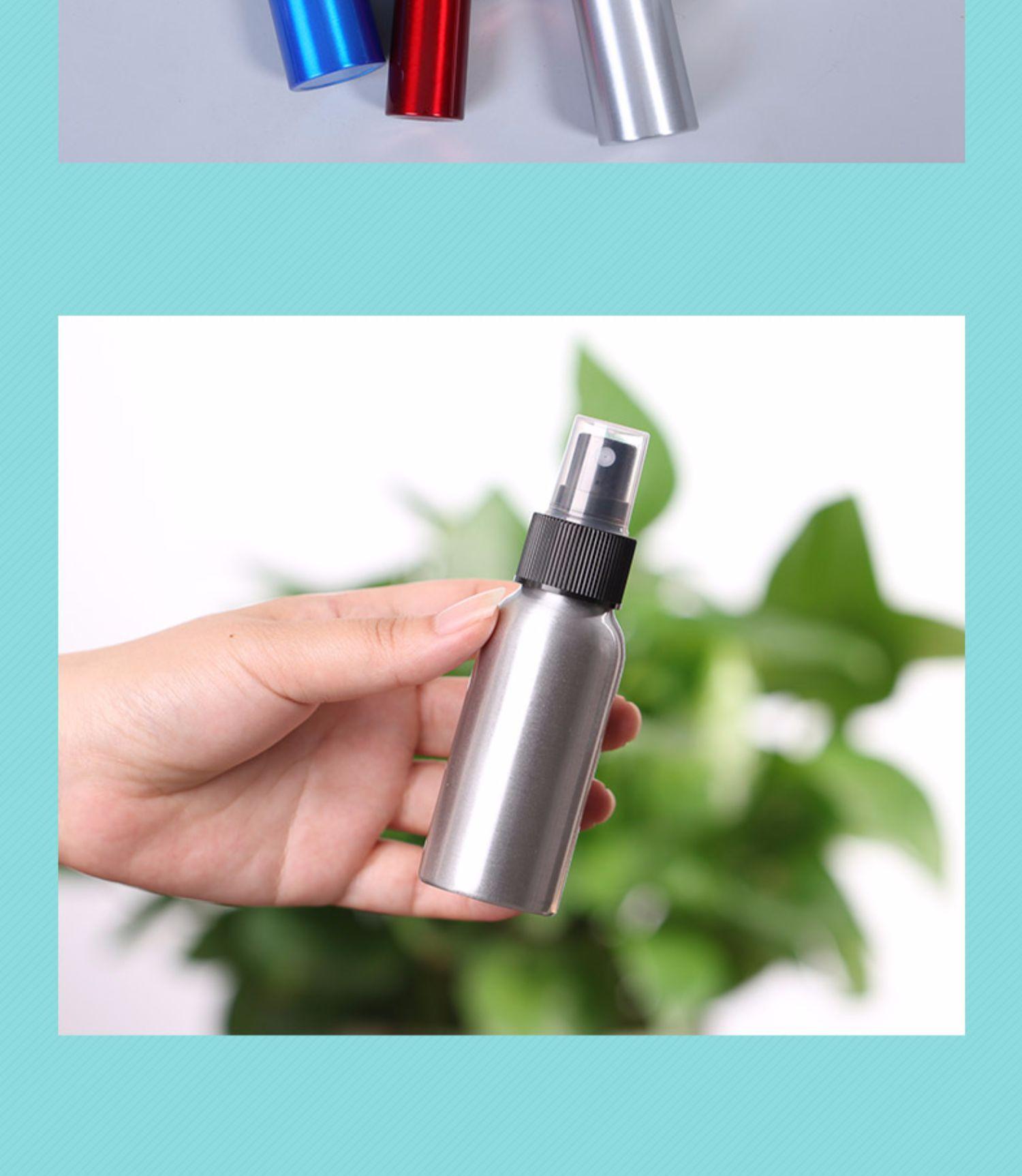 Botella pulverizadora de desinfectante de alcohol a prueba de luz, subenvasado para cosméticos, agua, niebla fina, viaje, pequeña botella de aluminio, pulverizador de agua, regadera vacía de metal