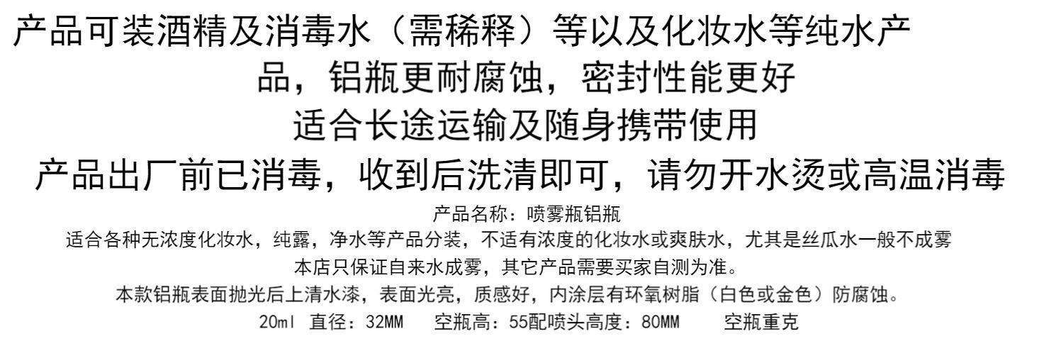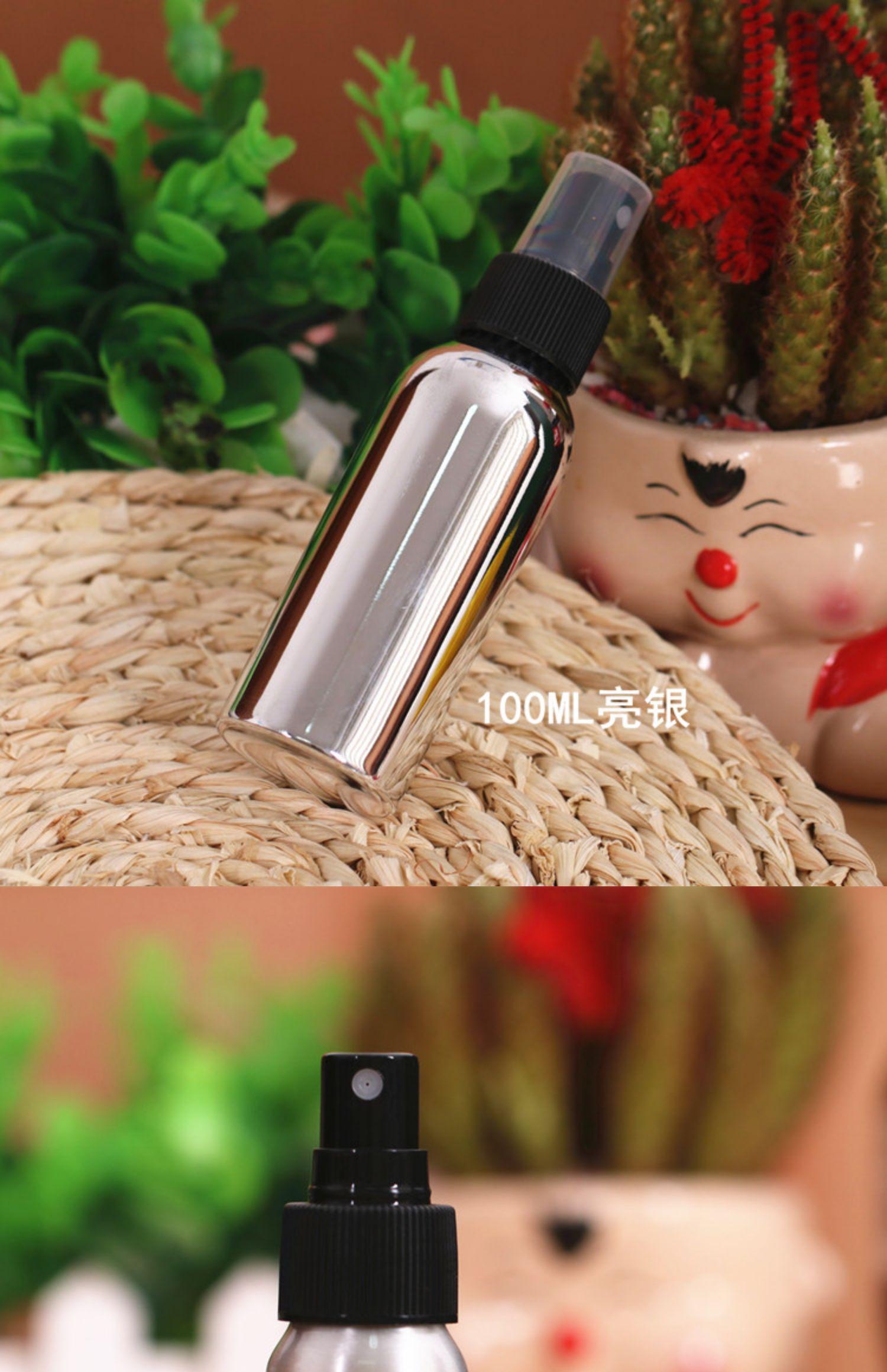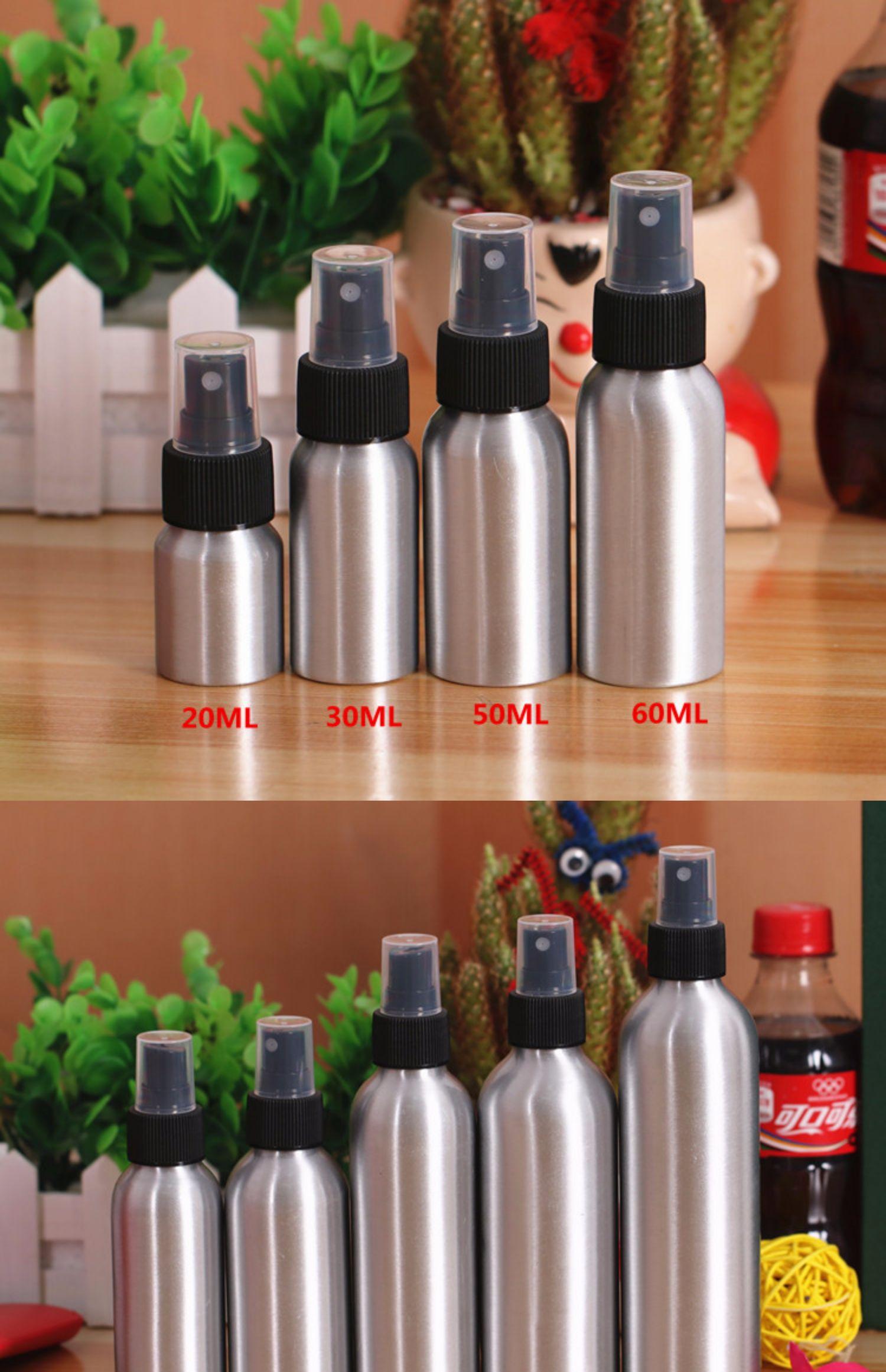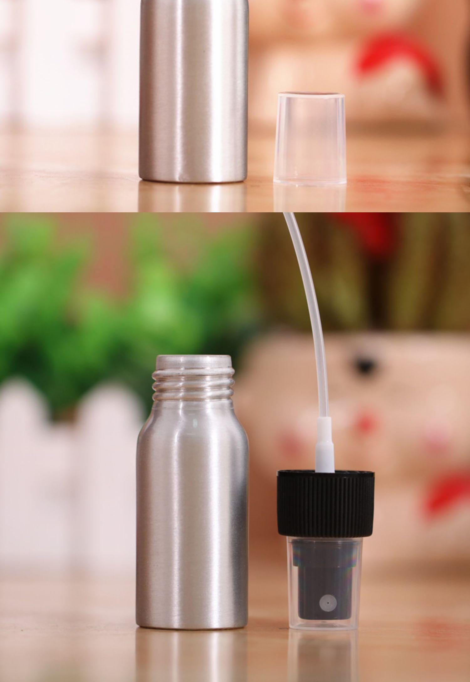 Botella pulverizadora de desinfectante de alcohol a prueba de luz, subenvasado para cosméticos, agua, niebla fina, viaje, pequeña botella de aluminio, pulverizador de agua, regadera vacía de metal