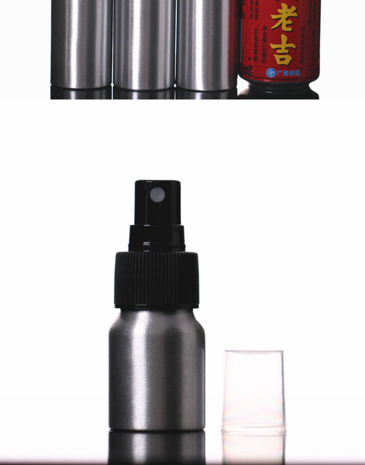 20ml short silver aluminum bottle with black nozzle, 30ml silver aluminum bottle with black nozzle, 50ml silve...