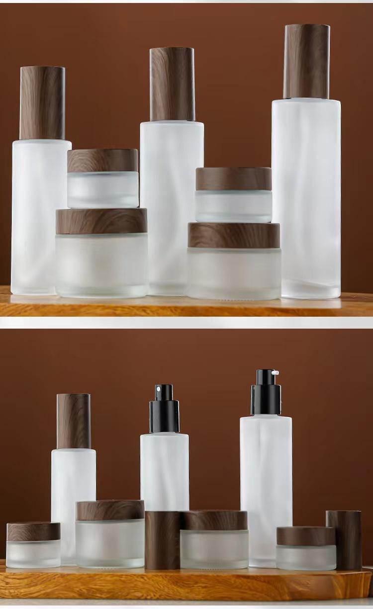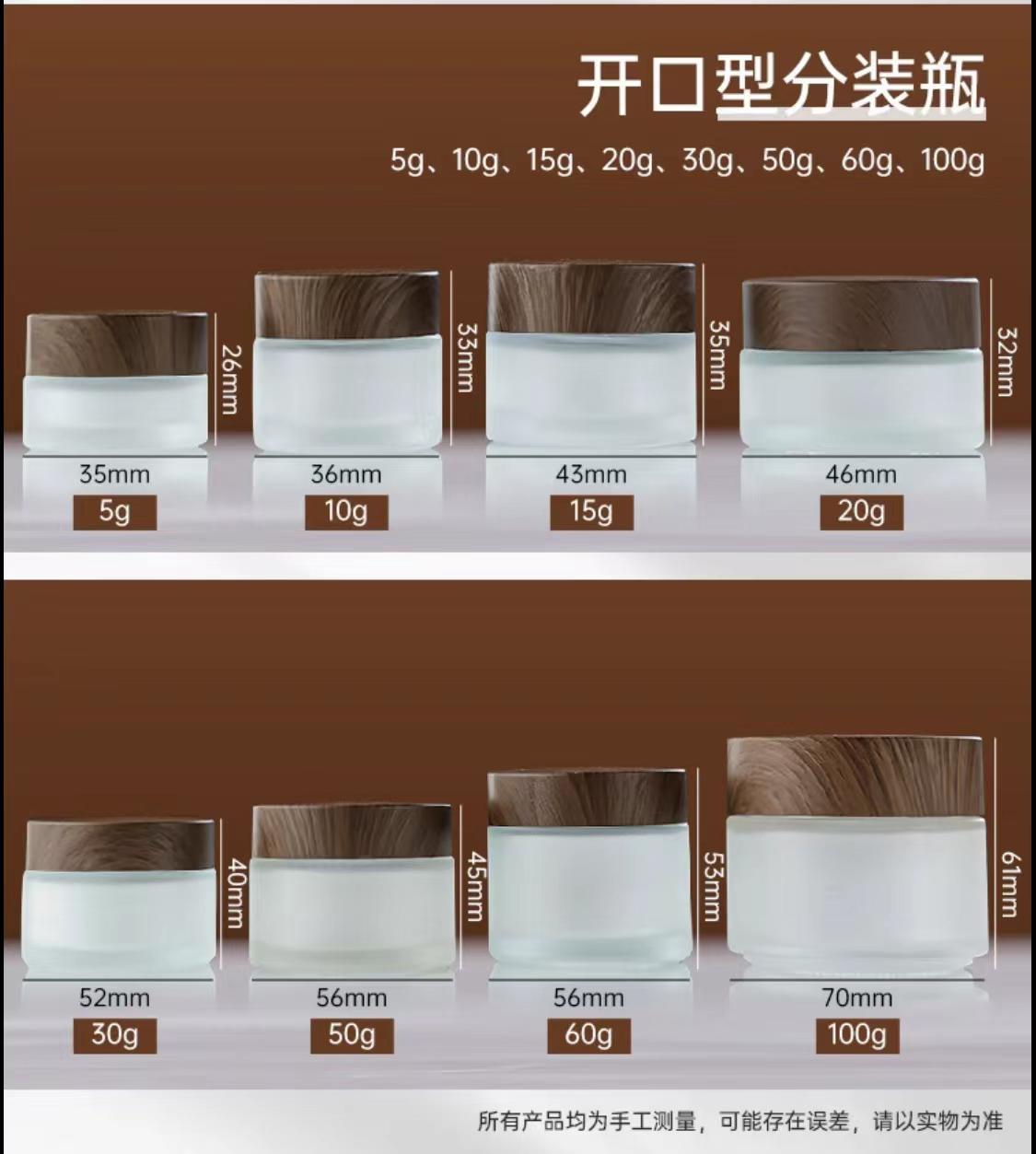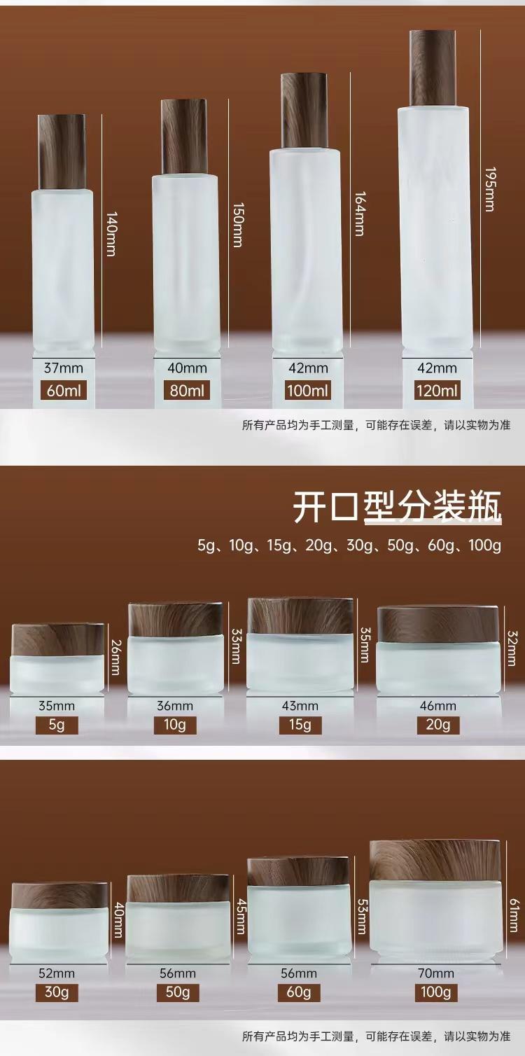 15g frosted facial cream bottle with black wood grain