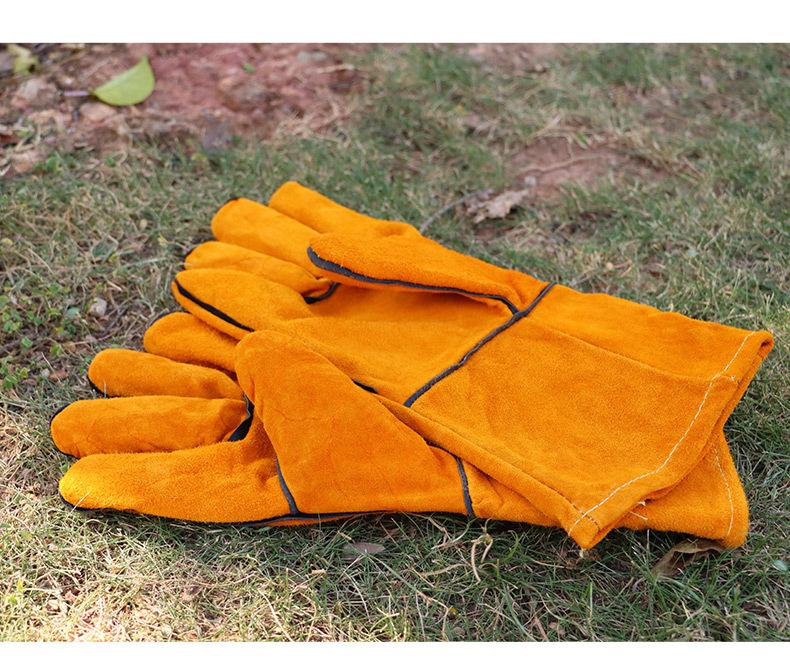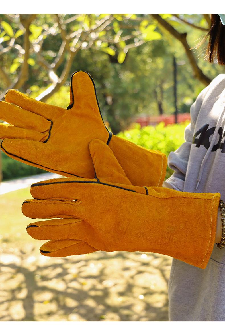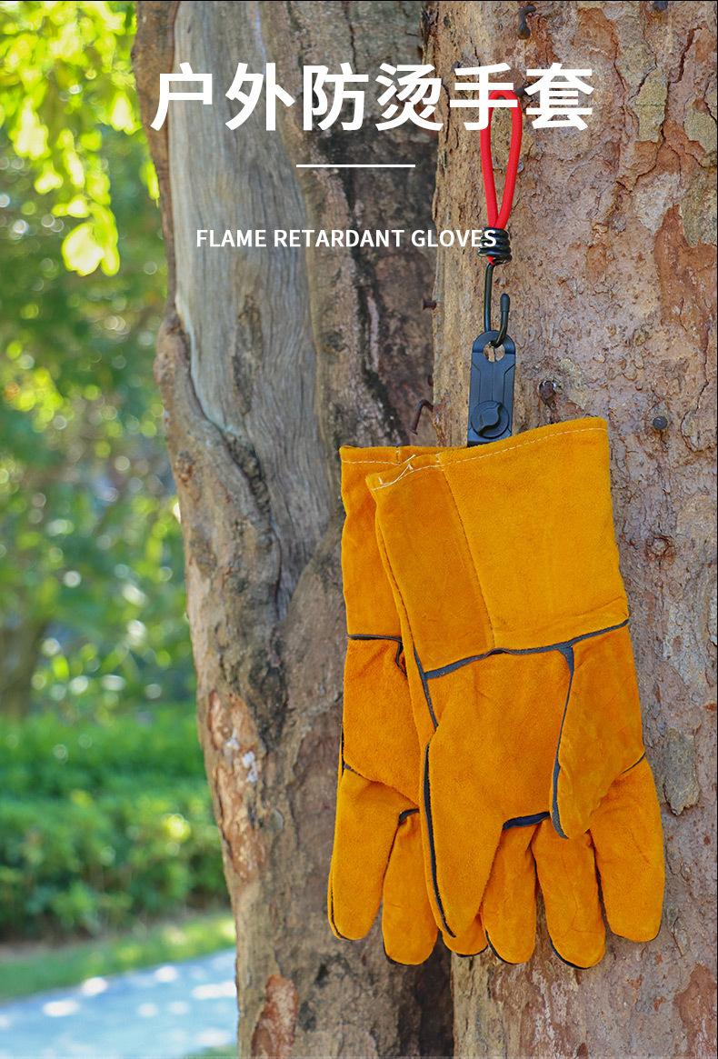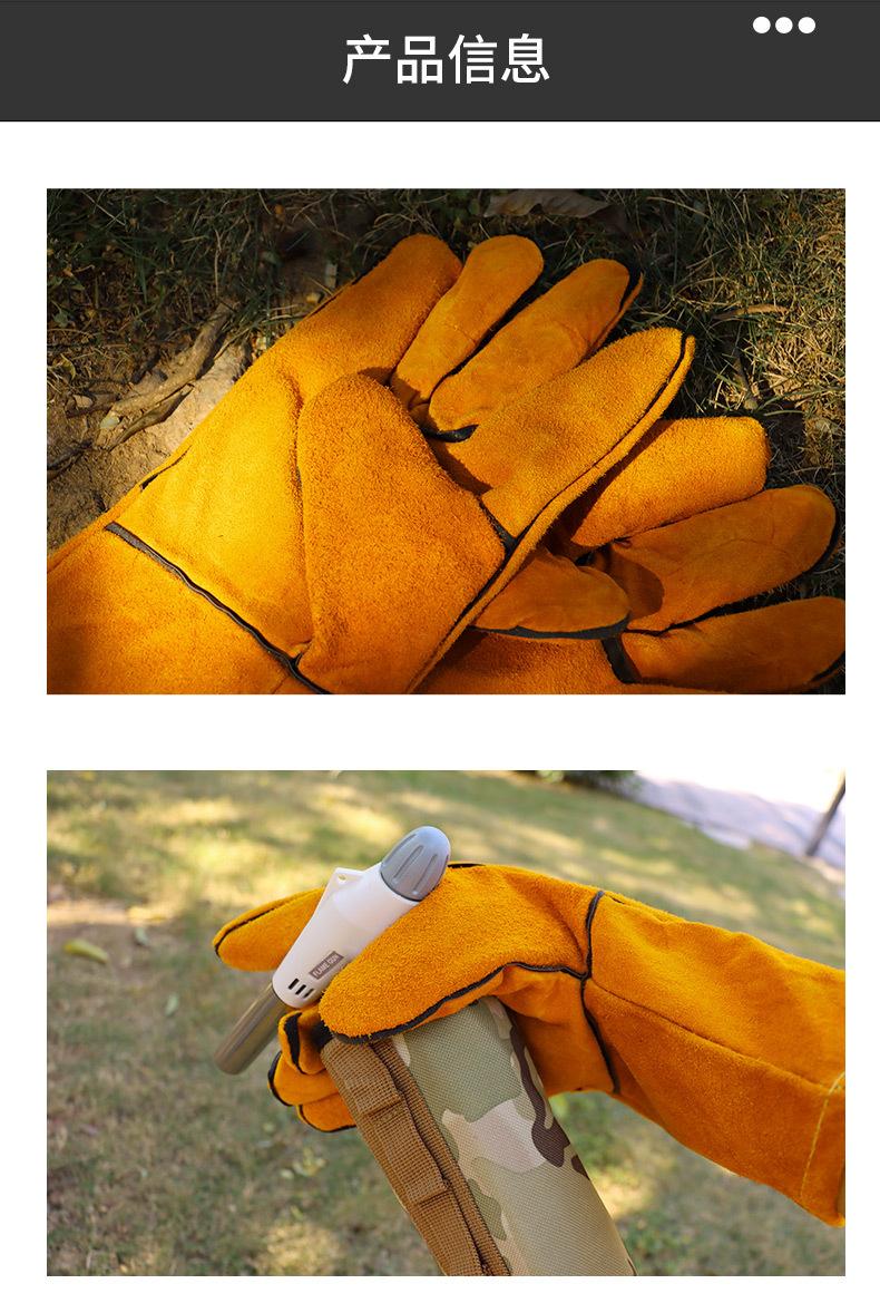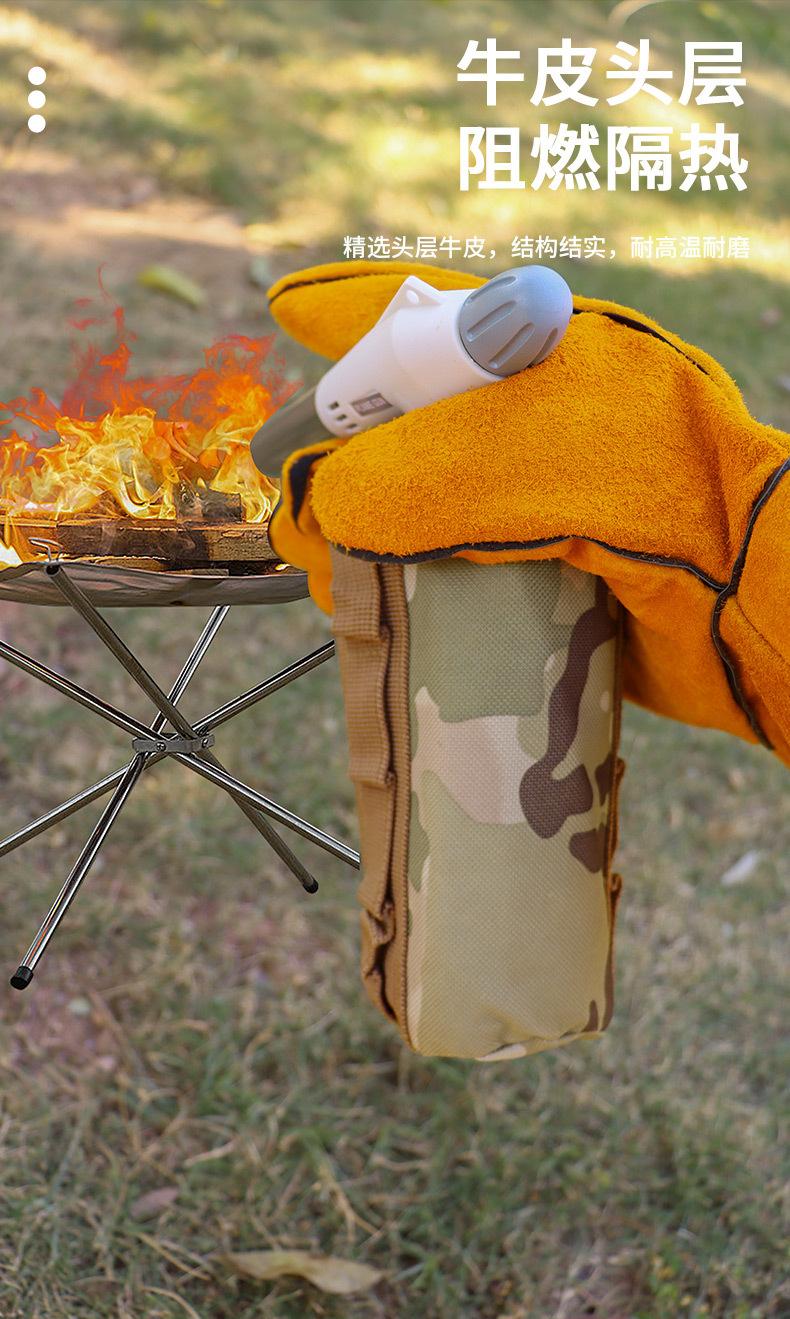 Guantes largos anti-escaldaduras para barbacoa al aire libre, de piel de vaca, con aislamiento térmico de alta temperatura, para horno, guantes protectores para acampar y barbacoa