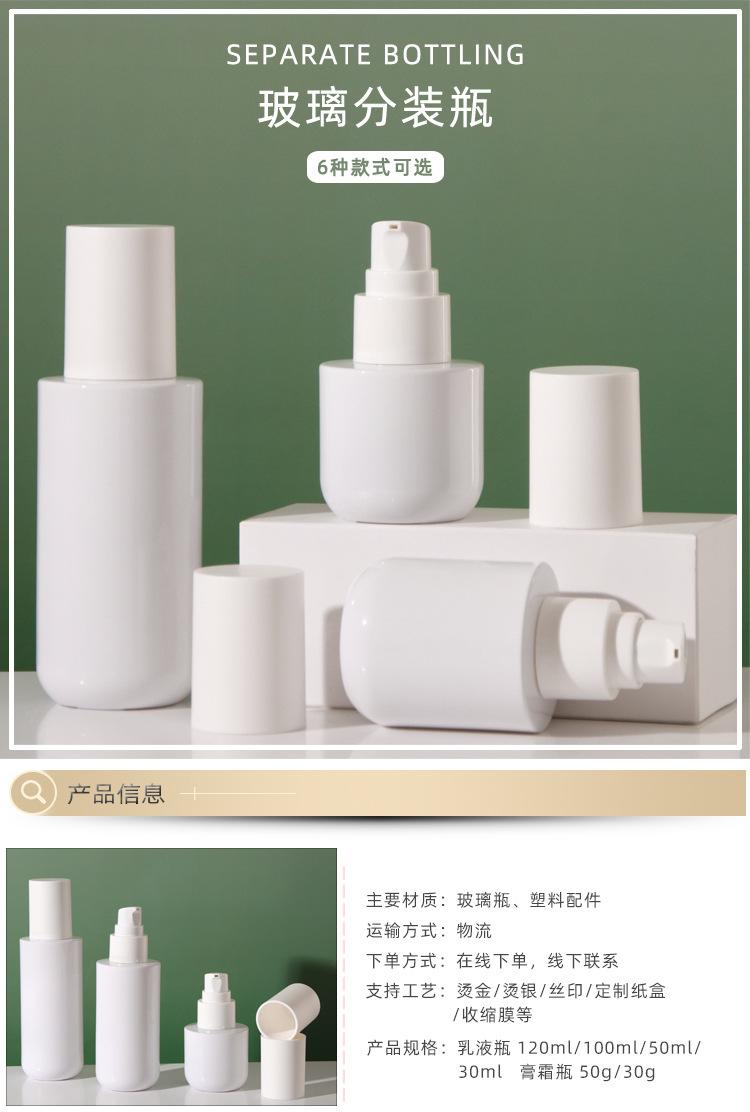 Nuevo material de embalaje cosmético, botella blanca, esencia, loción, base, líquido, botella vacía, botella de crema de 30 g, botella de vidrio subenvasada.