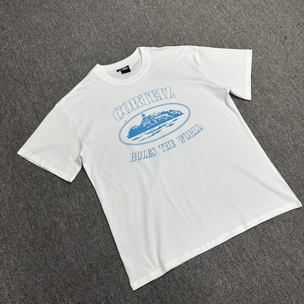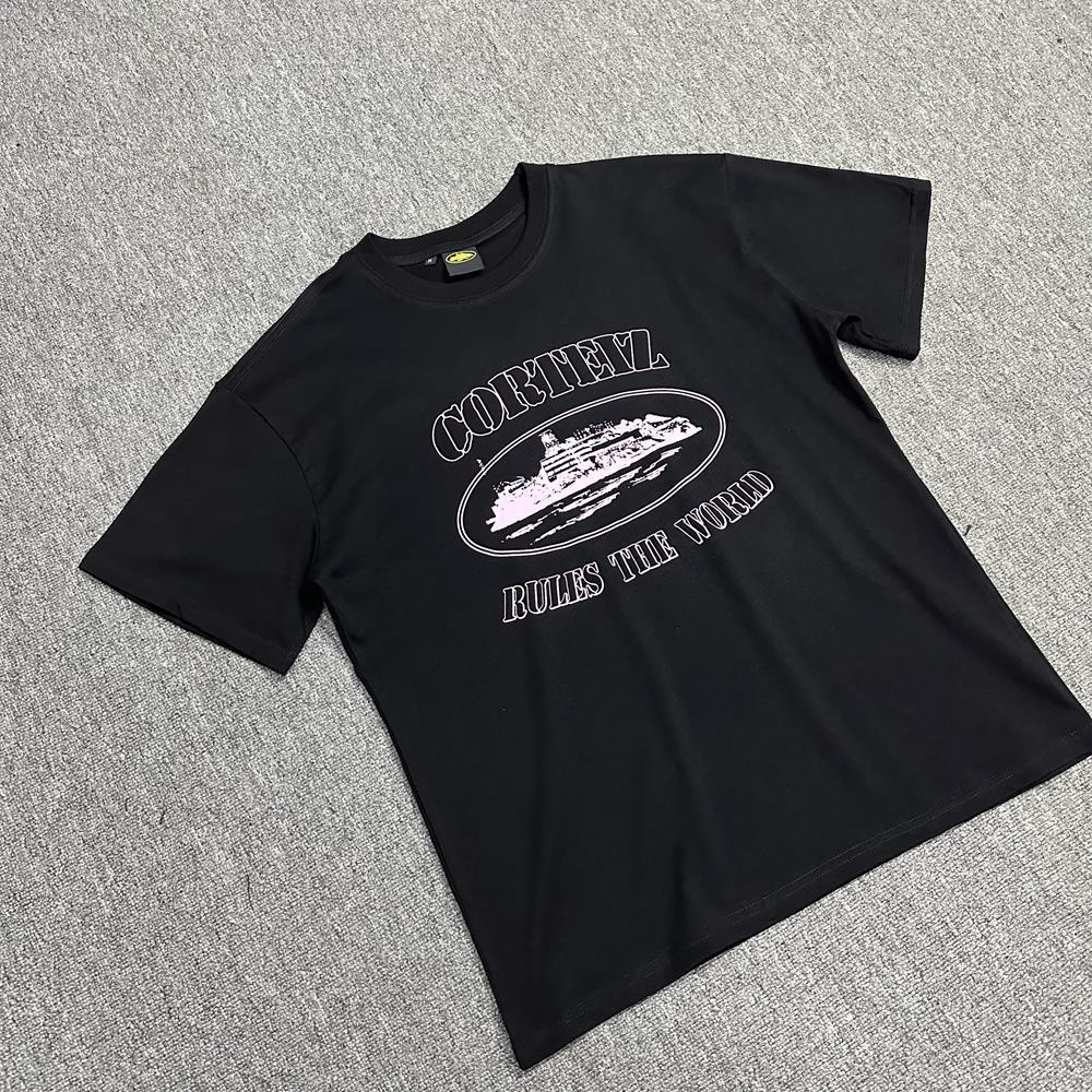 Marca Americana de Moda Camiseta de Manga Corta con Estampado de Crucero Top Retro Casual Holgado para Hombres y Mujeres