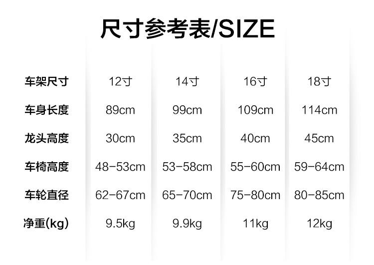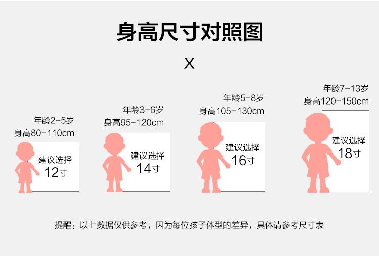 12inch for height [80- 90cm ], 14inch for height [90- 105cm ], 16inch For Height [100- 120cm ], 18inch For Hei...